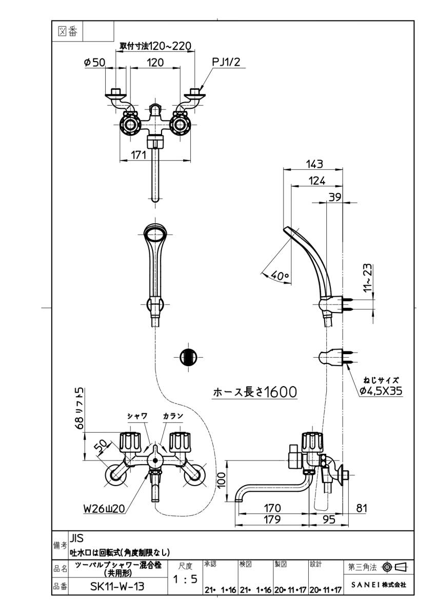 SANEI 三栄 ツーバルブシャワー混合栓 SK11-W-13 壁付 浴室 バスルーム用 endstbG