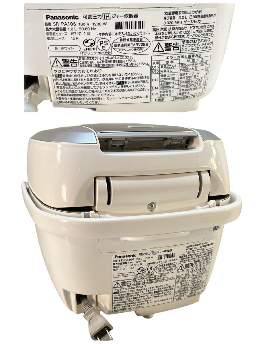◆通電確認済み Panasonic パナソニック 可変圧力IHジャー炊飯器 SR-PA106 おどり炊き 5合炊き ダイヤモンド 竈釜 現状品 □管理KA225