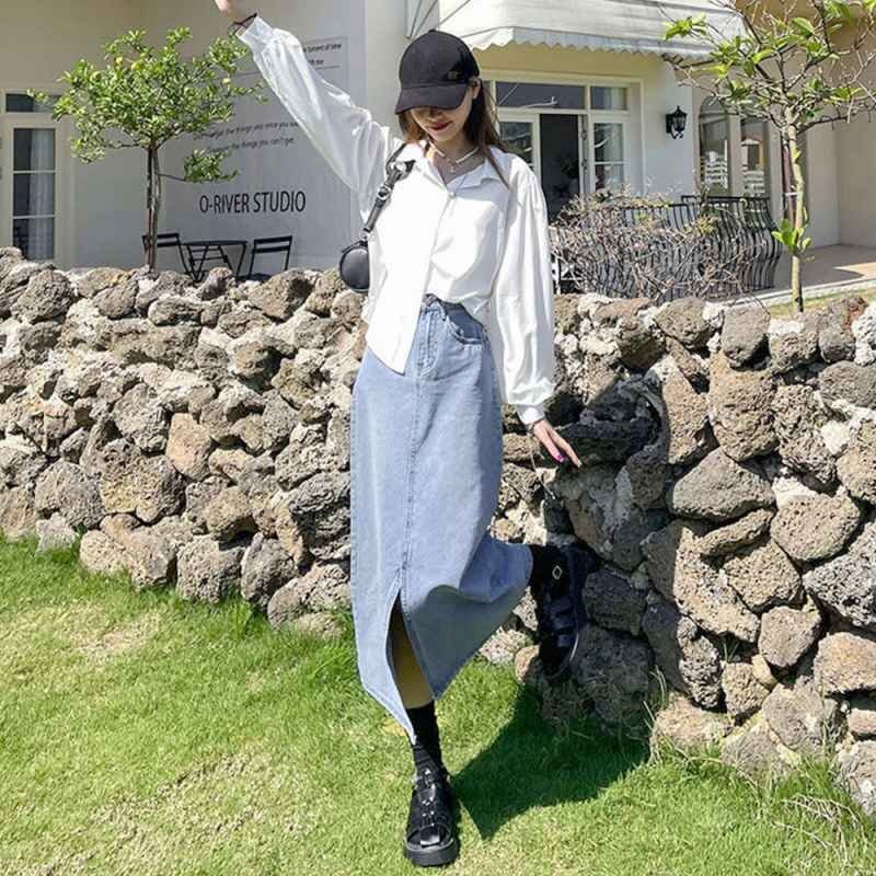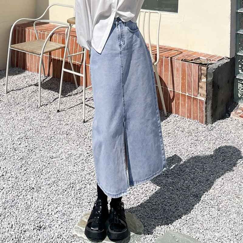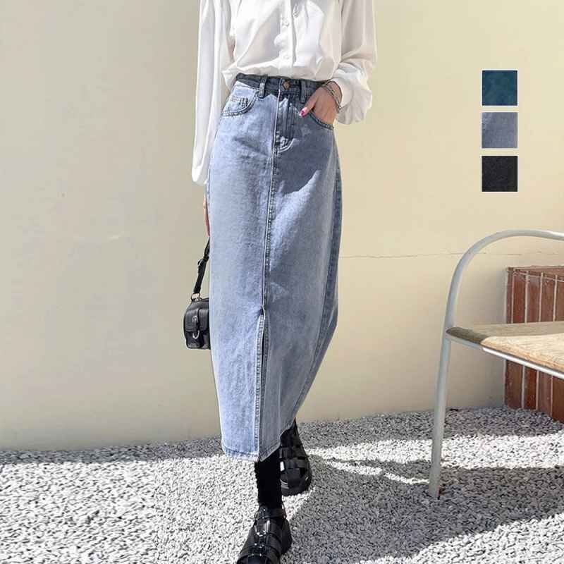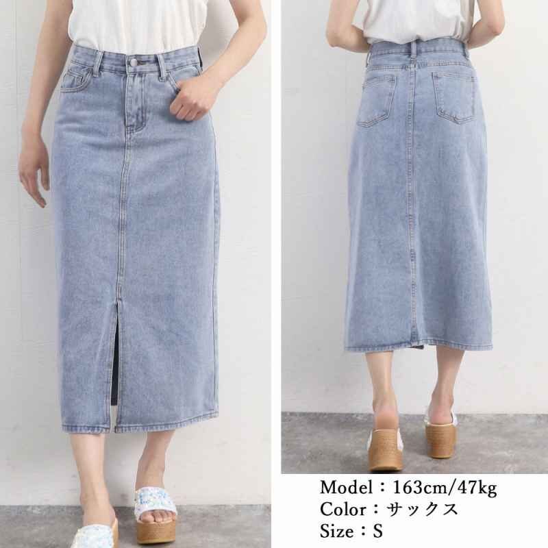 センタースリットで抜け感を演出しつつ足さばきも◎、大人な印象を与えてくれるタイトデニムスカートです。