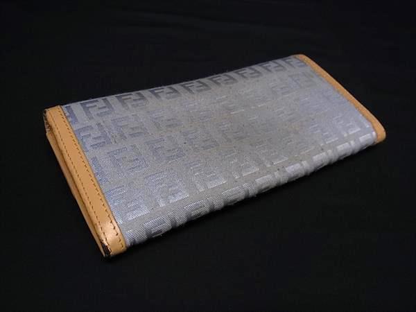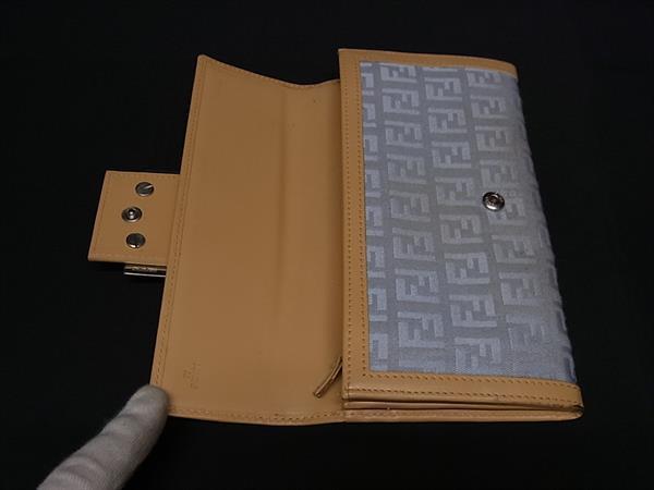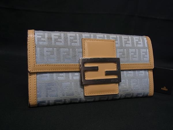 FENDI フェンディ ズッカ柄 ズッキーノ マンマ キャンバス×レザー 二つ折り 長財布 ウォレット ライトブルー系×ベージュ系 DG9115