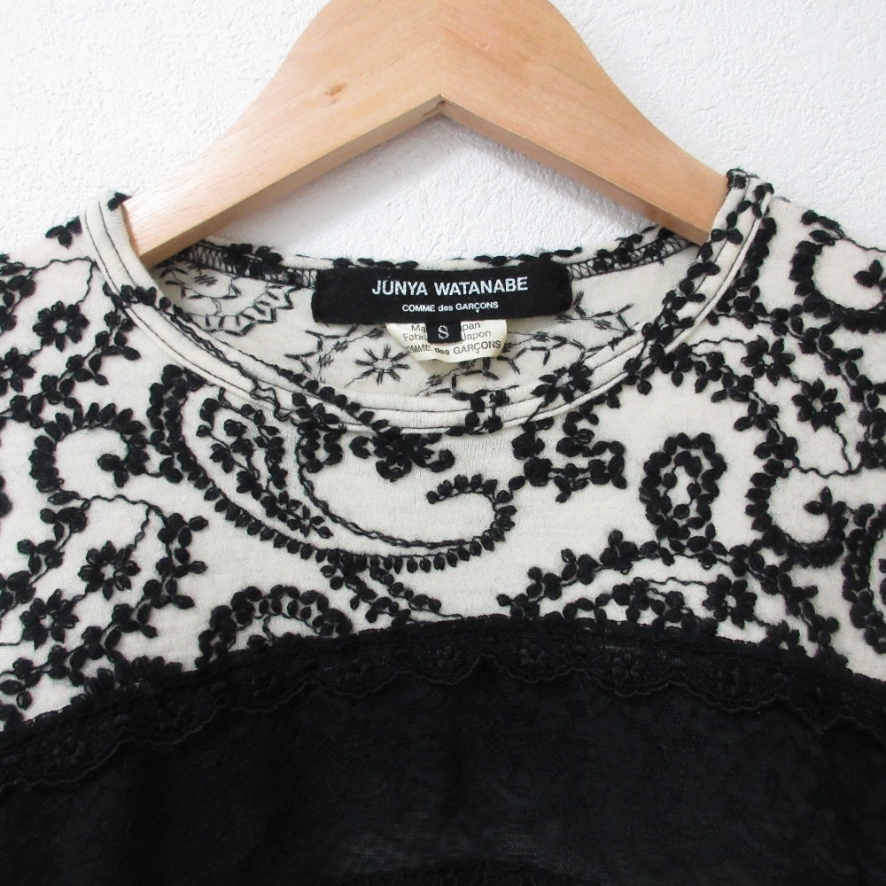 商品名:AD2014 JUNYA WATANABE COMME des GARCONS ジュンヤワタナベ レーストリム エンブロイダリー ニットカットソー サイズS ホワイト