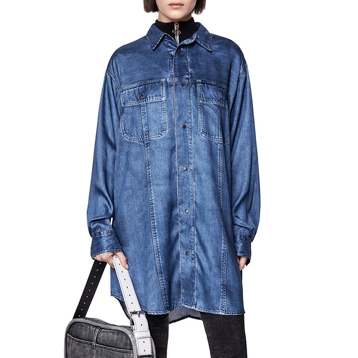 ディーゼル DIESEL シャツワンピース レディース デニム風デジタルプリント トロンプルイユ 長袖 膝丈 C-EJA