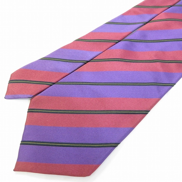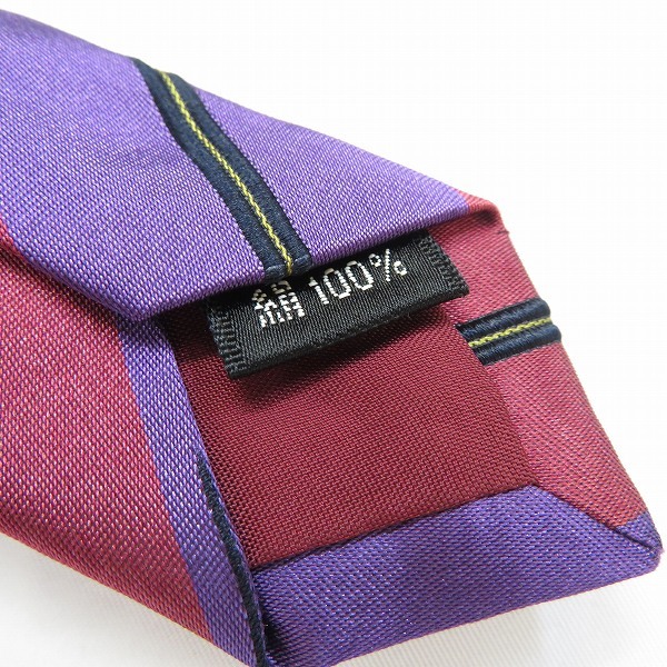 商品名 | #ae ポール・スミス PaulSmith ネクタイ 紫系 黒 黄色 レジメンタル 光沢 シルク メンズ 938612 k01 |