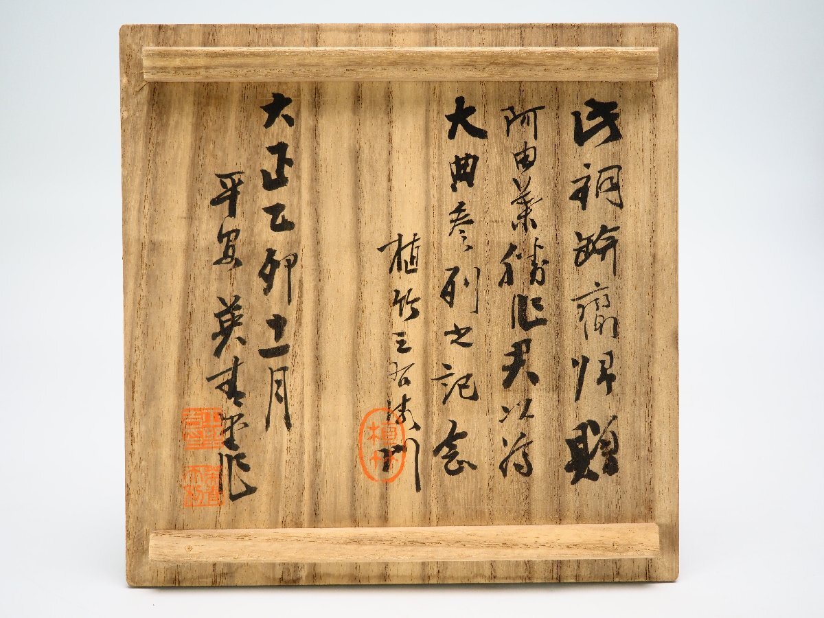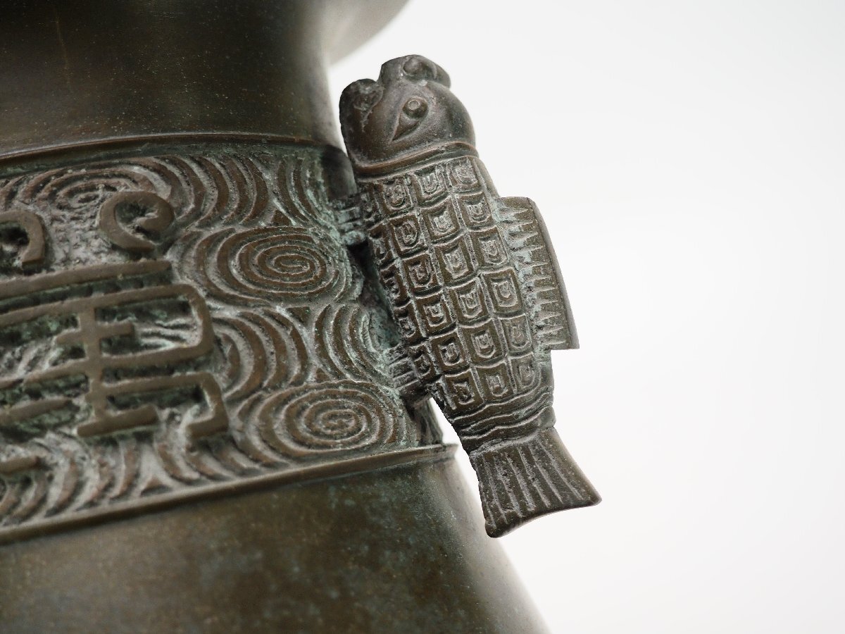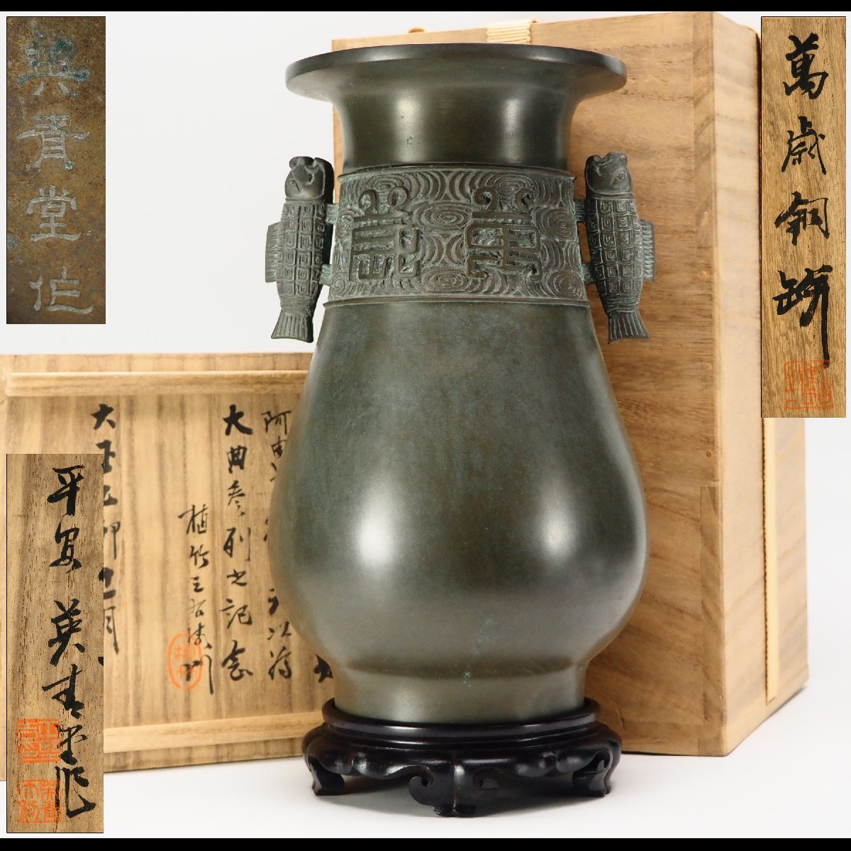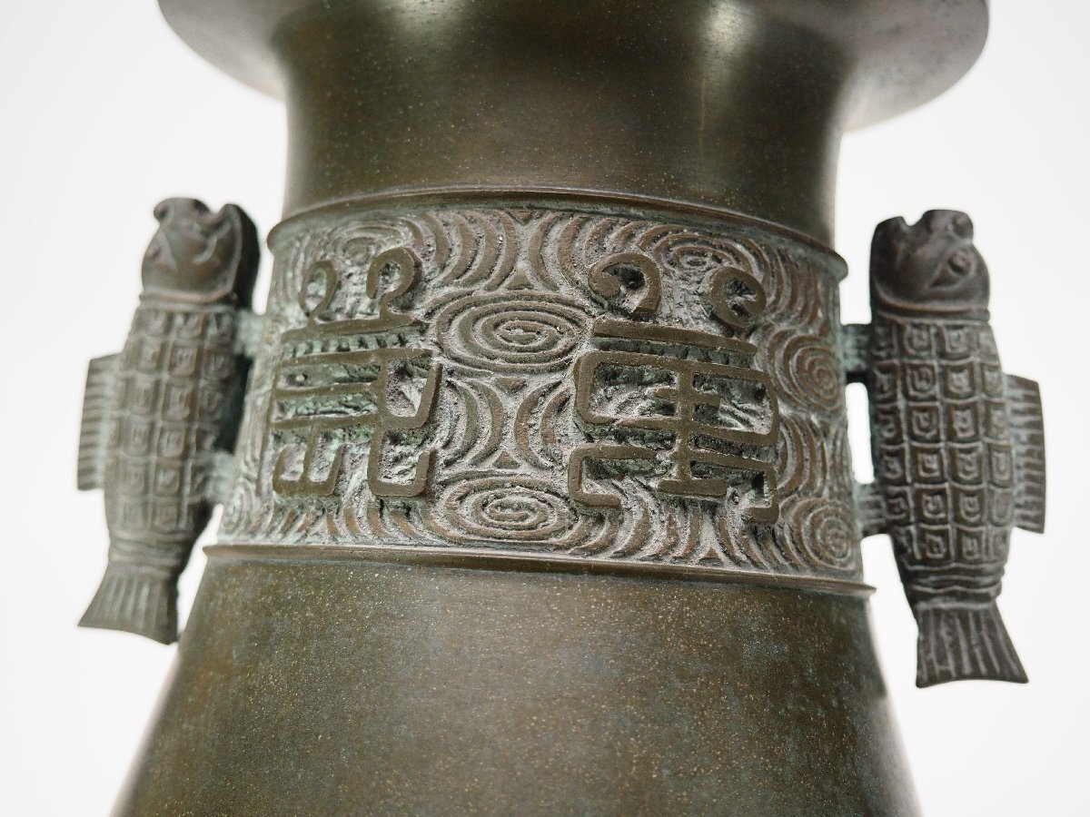 | 《サイズ》 大きさは 幅 16cm ・ 台抜きの高さ 25.8cm ・ 台込みの高さ 29cm ・ 重さ 2626g 【※計測サイズは最大径で計測しております(例;茶釜であれば、幅は鐶付の先から鐶付の先まで、高さは底面から摘みの先までとなります】 | |||