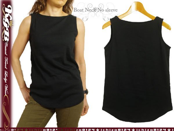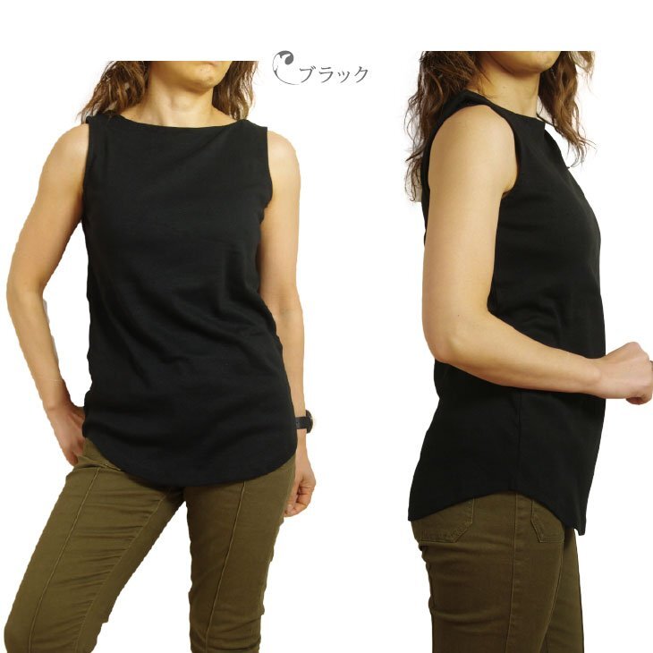 LL 黒 ボートネック ノースリーブ タンクトップ 綿 レディース 無地 新品
