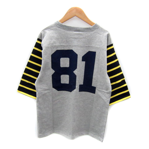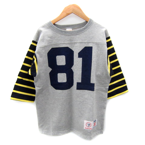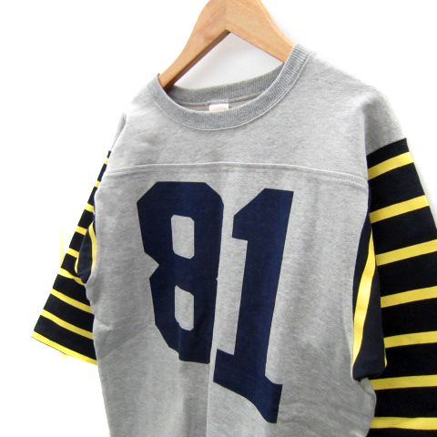 未使用品 ボートメイクニュークローズ カットソー 七分袖 ラウンドネック 切替 ボーダー柄 プリント F グレー /SY39 レディース
