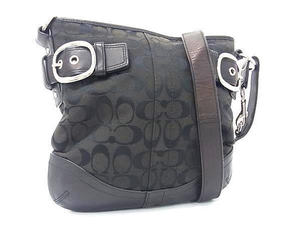 1円 COACH コーチ F19682 シグネチャー キャンバス×レザー クロスボディ ショルダーバッグ 斜め掛け レディース ブラック系 GB1441