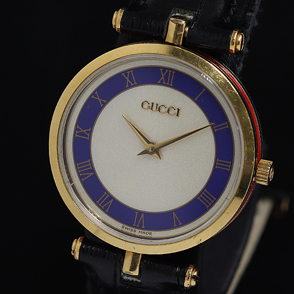 1円 稼働 グッチ QZ シルバー/ブルー文字盤 レディース腕時計 4609000 8KHT IGR