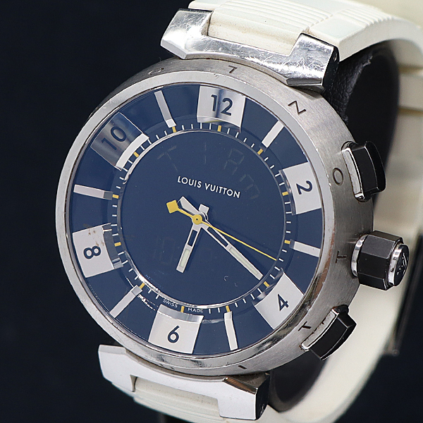 1円 稼働 ルイヴィトン QZ デジタル文字盤 タンブール インブラク Q118F メンズ腕時計 0094600 8ERT KMR