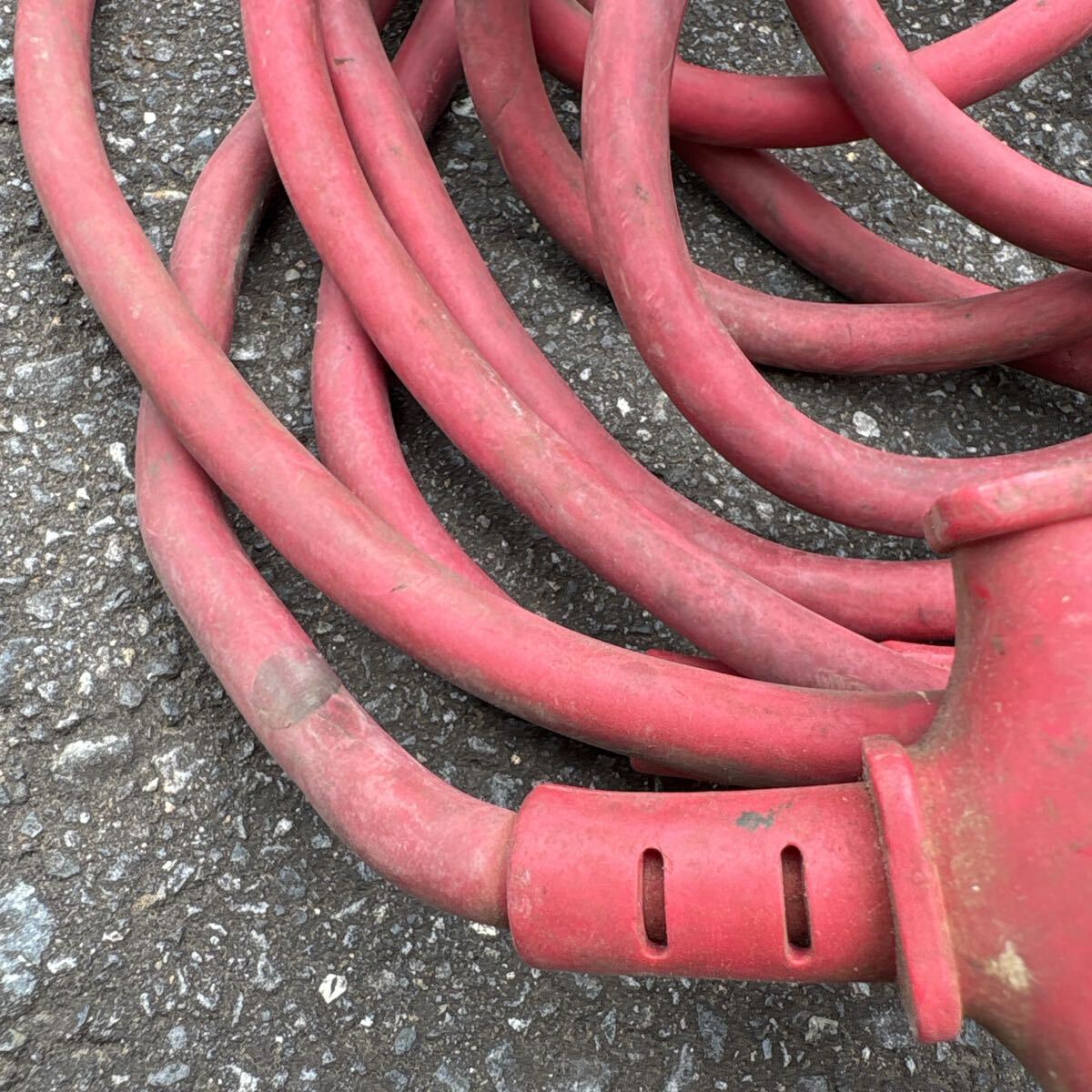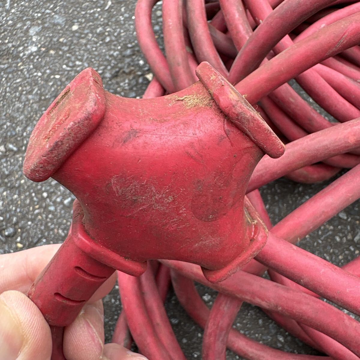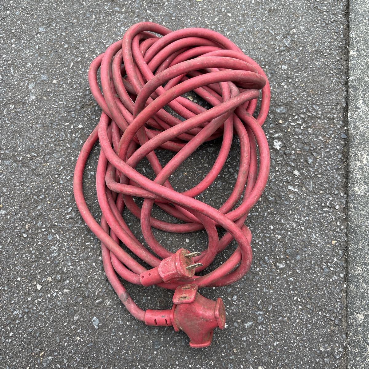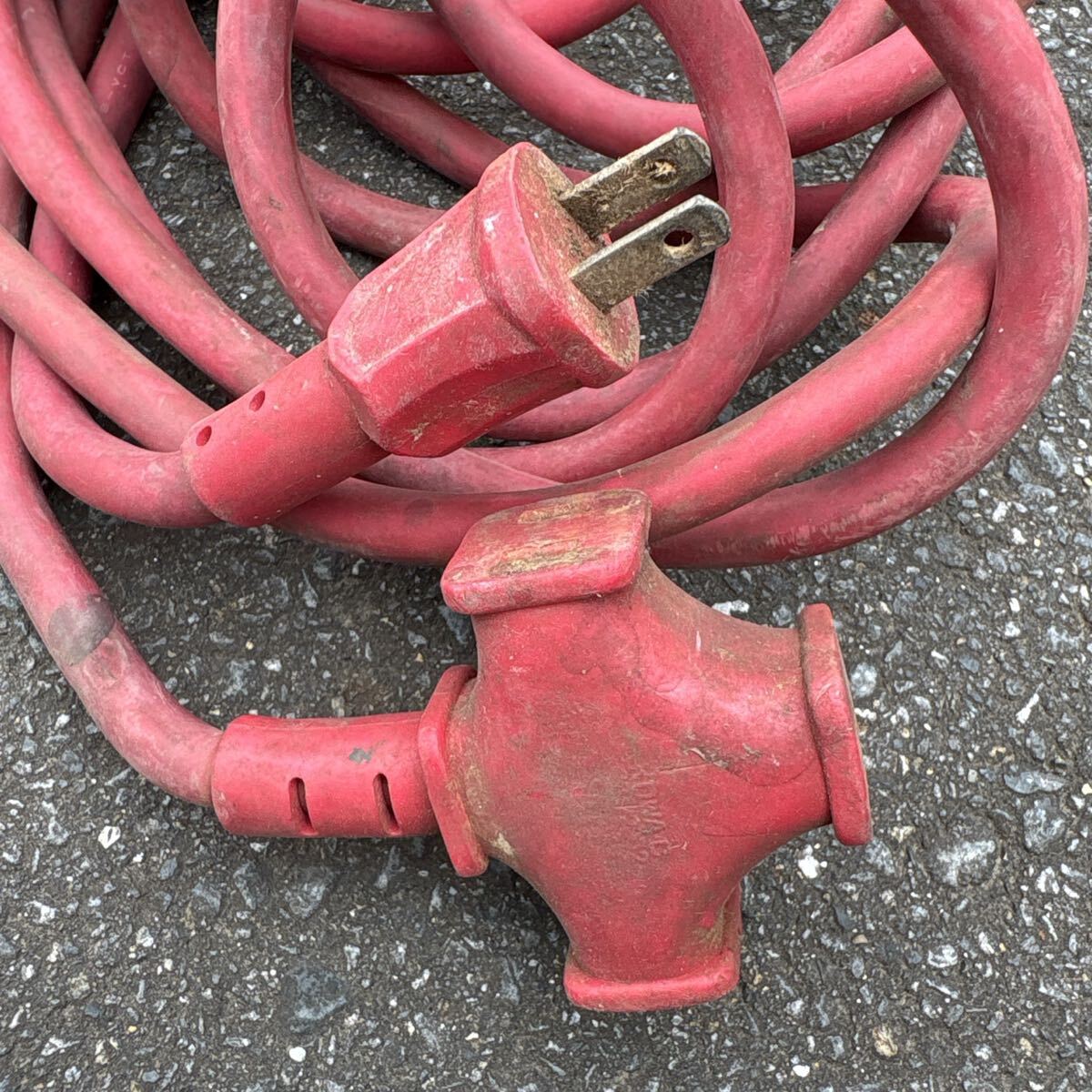 赤色の2ピンプラグ付き延長コード、分岐型コネクタ。