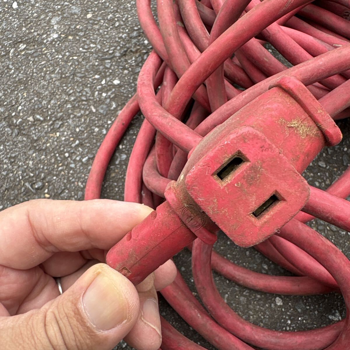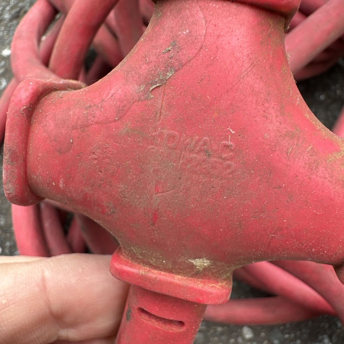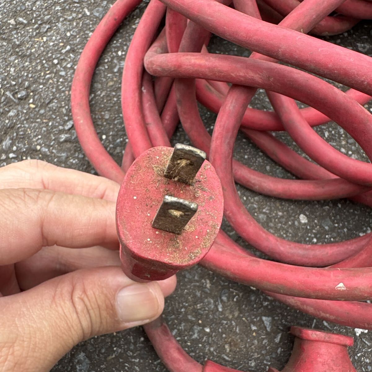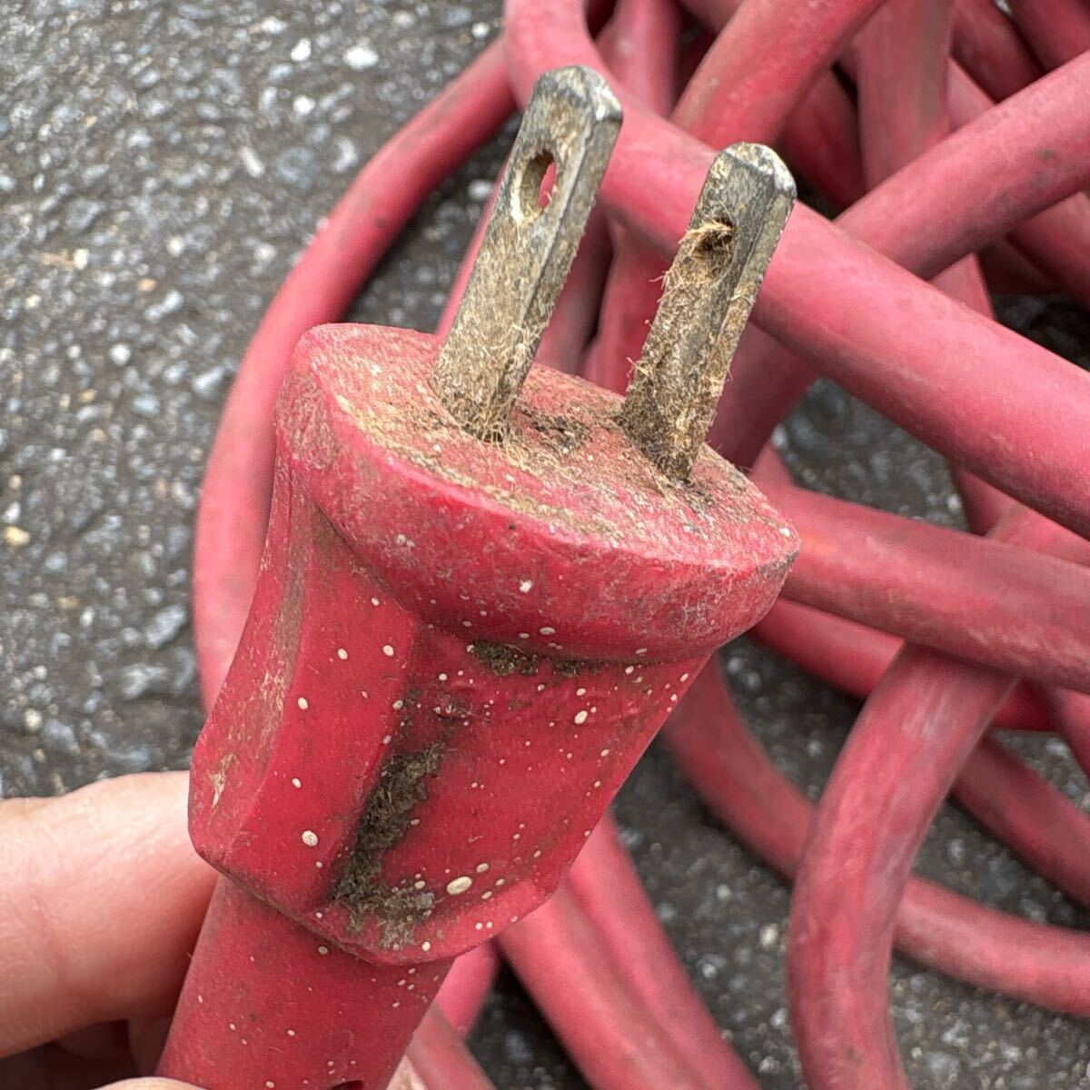 赤色の2ピンプラグ付き延長コード、分岐型コネクタ。