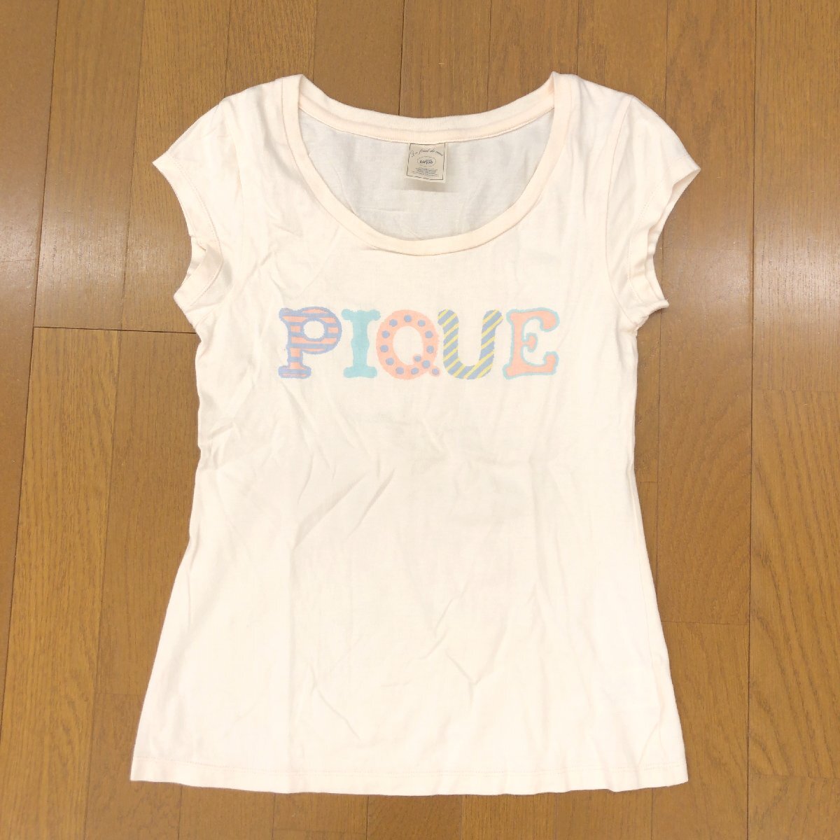 GELATO PIQUE ジェラートピケ コットン100% オープンネック ショートスリーブ プリント Tシャツ F ベージュ カットソー 半袖 レディース