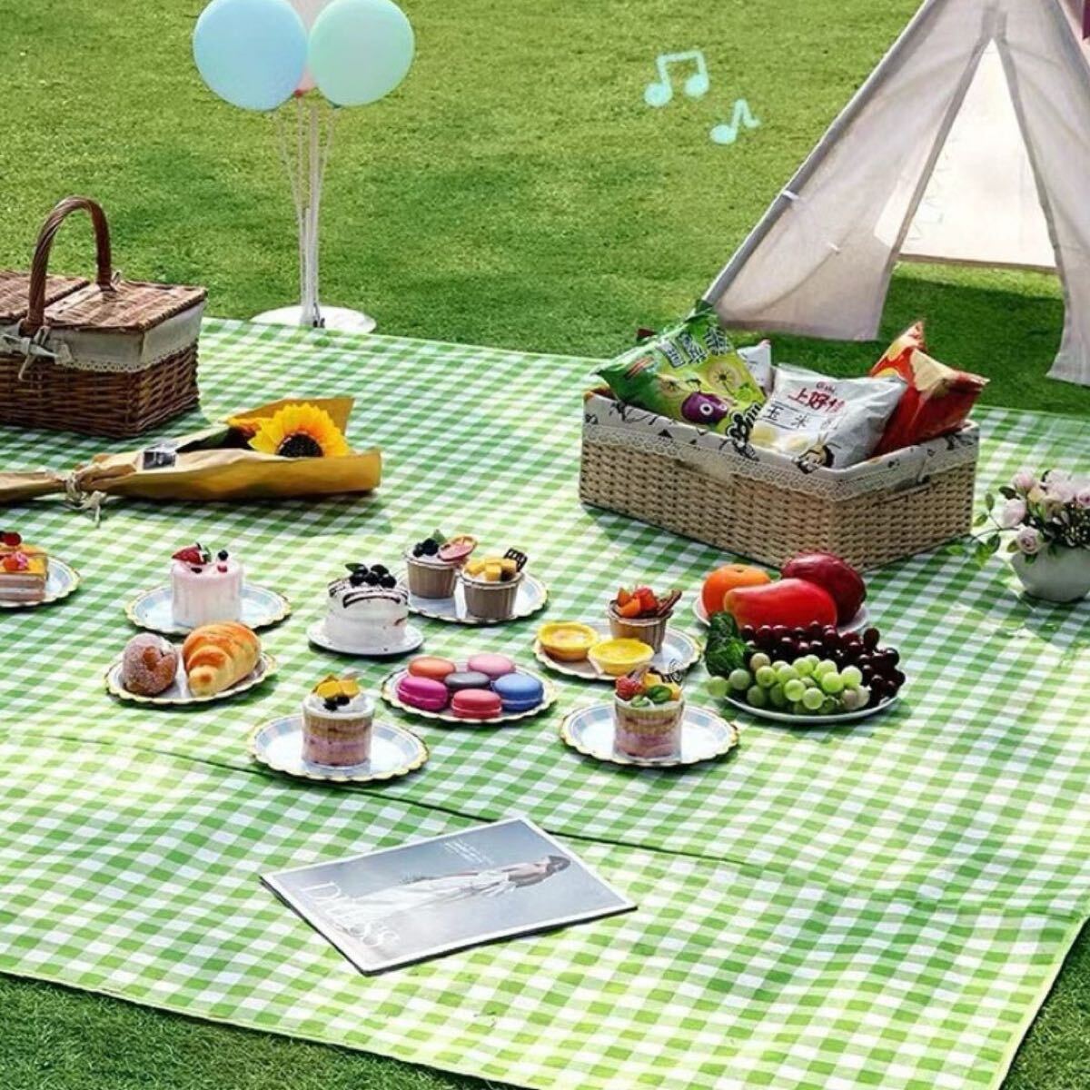 レジャーシート 大判 大きめ ピクニック コンパクト 軽量 キャンプ 防水 グリーンチェック 折り畳み ビーチ アウトドア 家族 おしゃれ