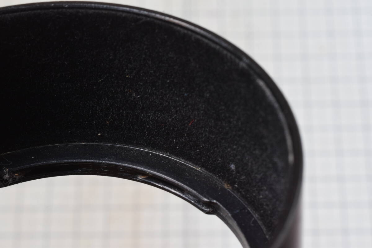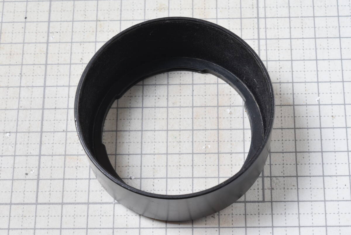 特記事項:FDの時代のフードです、現行品ではございません。製造を中止して積年の時(4050年)を経ています、素材の劣化は否めません、レンズとのロックに要する小さなコマに変質(削れ・白化)が生じています、そのため完全にはロックできない場合があります、既にキャノンでも保守部品なく対応が打ち切られています、ご自身で工夫してご利用願います。また当該レンズの所有はありません、従って試用はしていません。