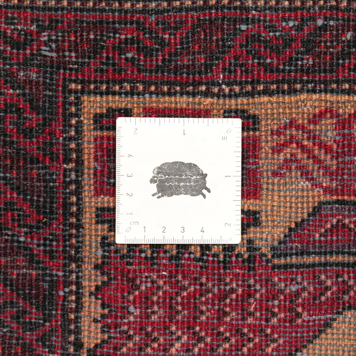 比較的小ぶりで扱いやすいサイズのため、床敷きとしてはもちろん、壁掛けやインテリアのアクセントにも適しています。経年によるわずかな色にじみがありながらも、全体的に良好な保存状態で、セミアンティークならではの温かみと深みを楽しめる一枚です。