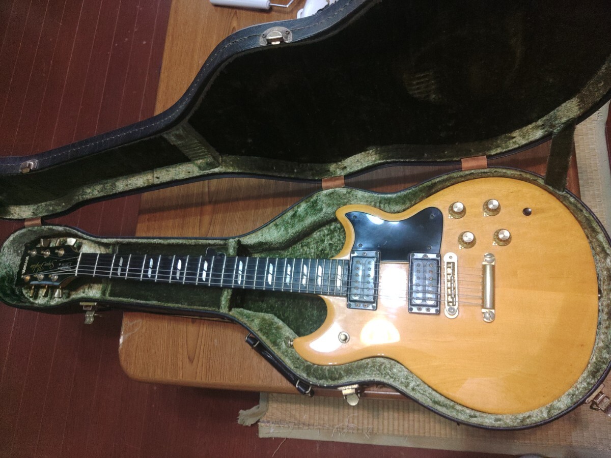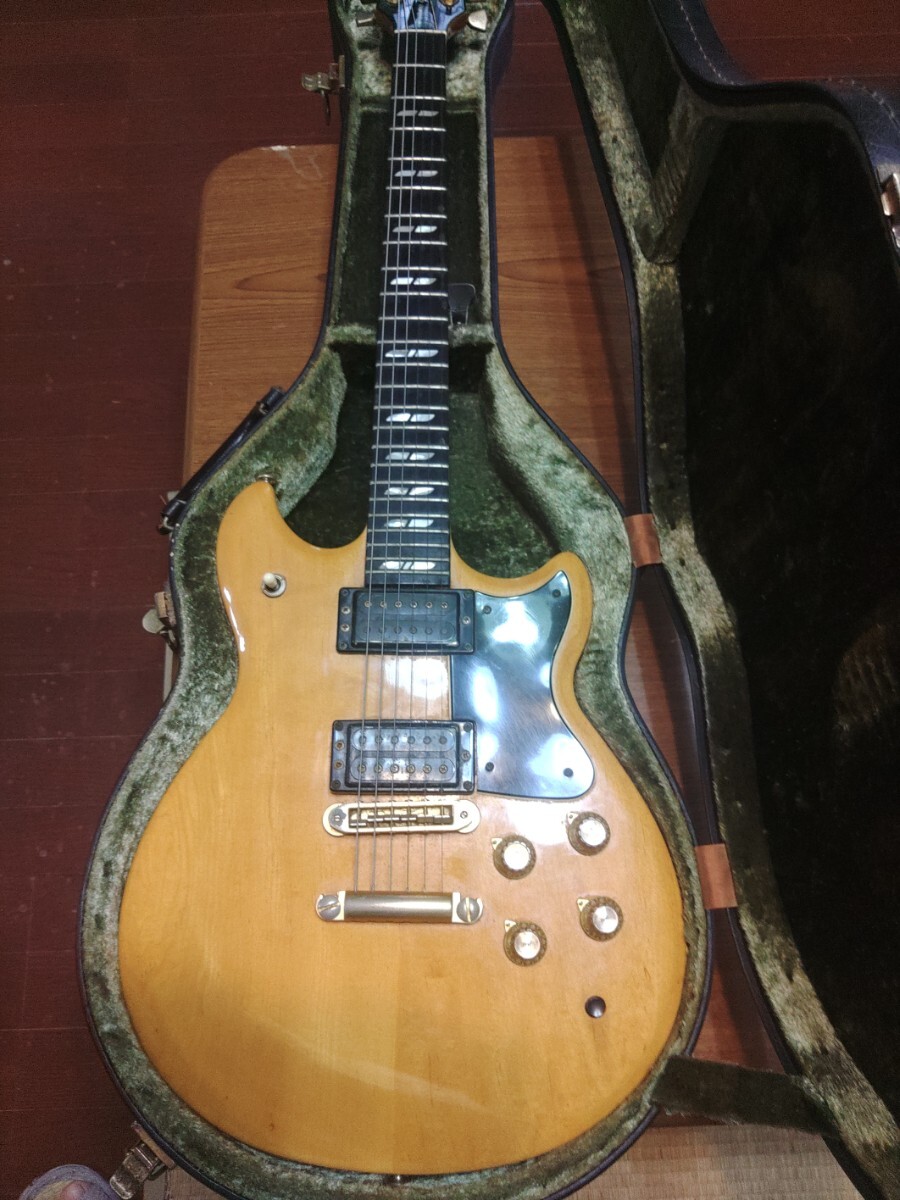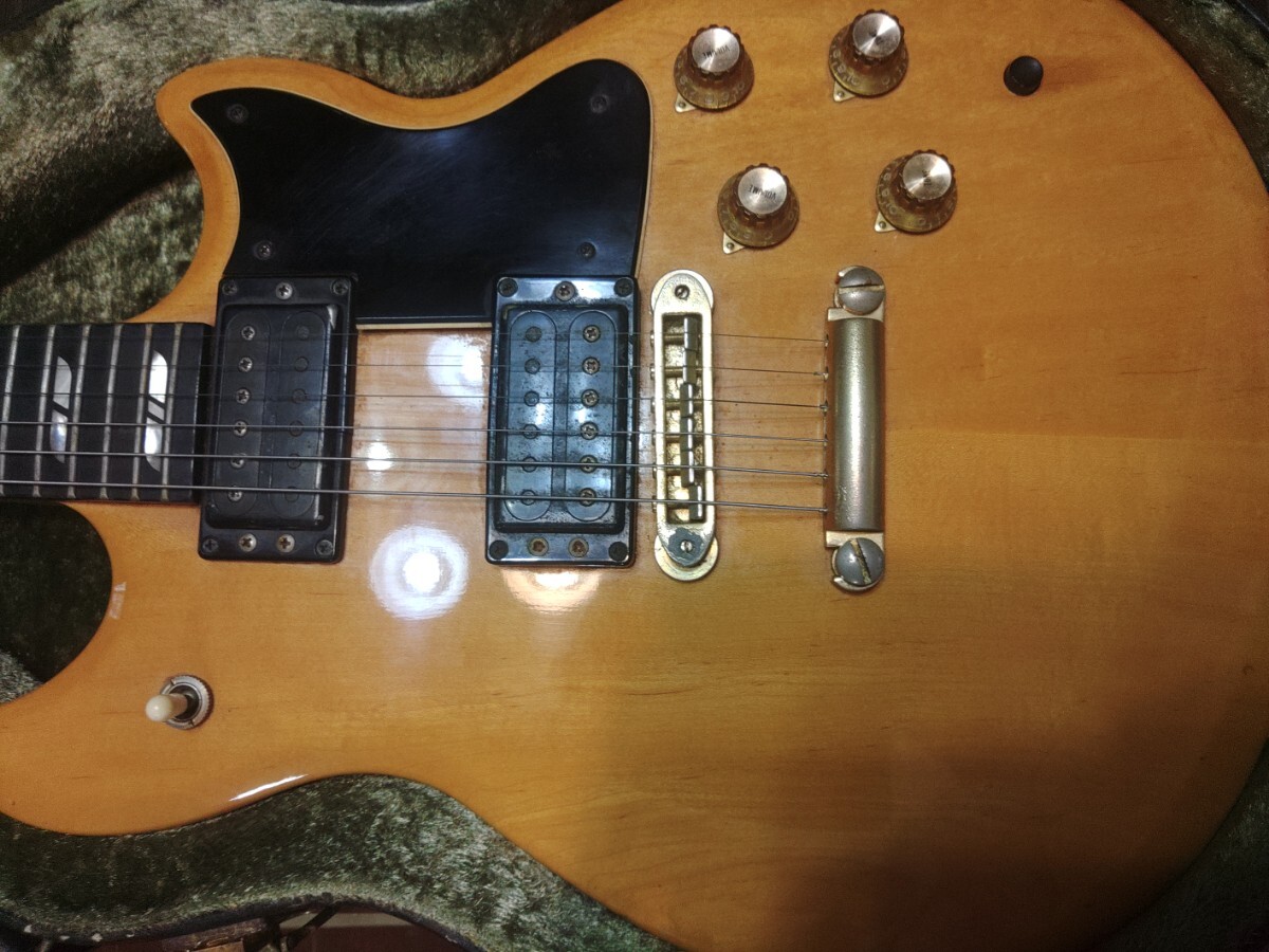 ジャパンヴィンテージ。1979年購入。数年前まで使用していました。出品にあたり音出し等チェックしました。各ビックアップ、コントロールツマチ、バイサウンドスイッチ、演奏するのに特に問題はないと思います。ネックも問題無いと判断します。主観ですが、とても弾きやすいギターと思います。金属パーツに経年の関係上クスミ等あります。写真で御判断してください。ワンオーナーです。