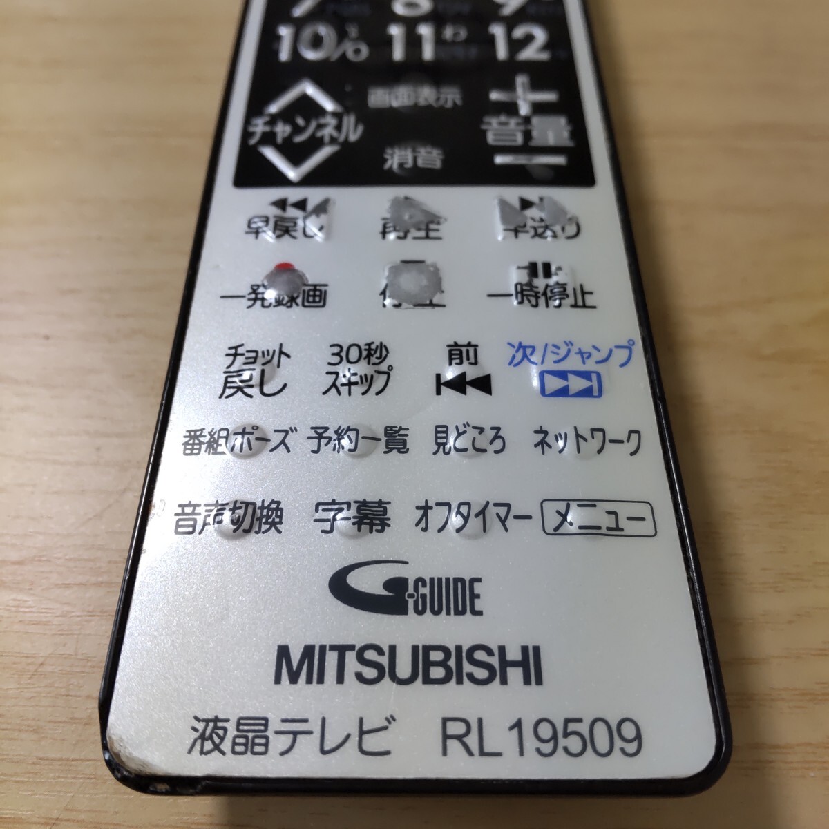 Im347 MITSUBISHI RL19509 TV リモコン 三菱 レコーダー/ブルーレイ 除菌清掃&赤外線発光確認OK 動作品 現状品 送料無料