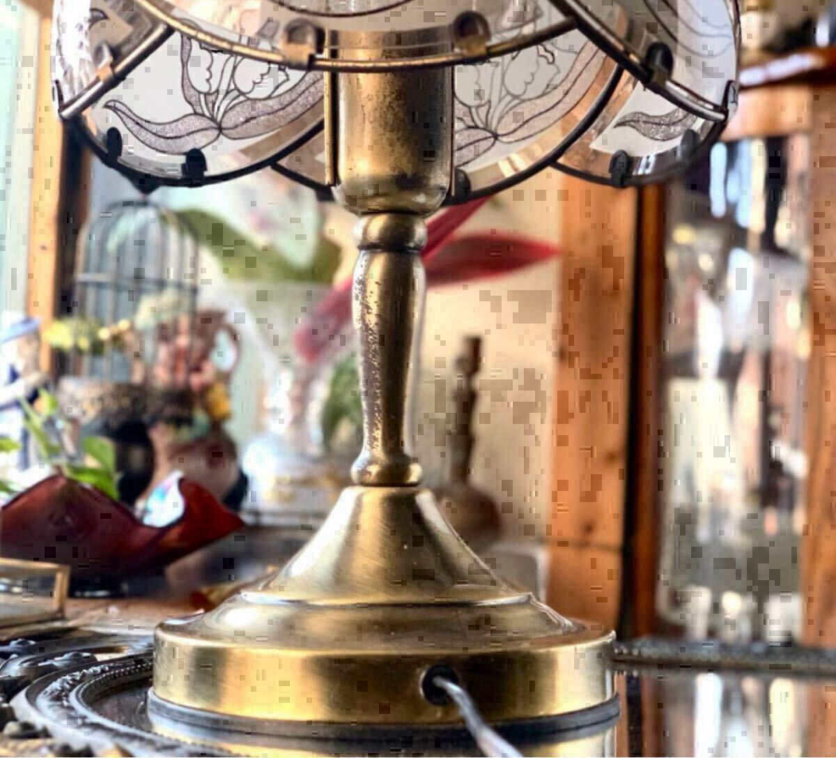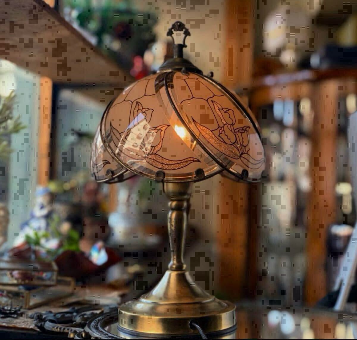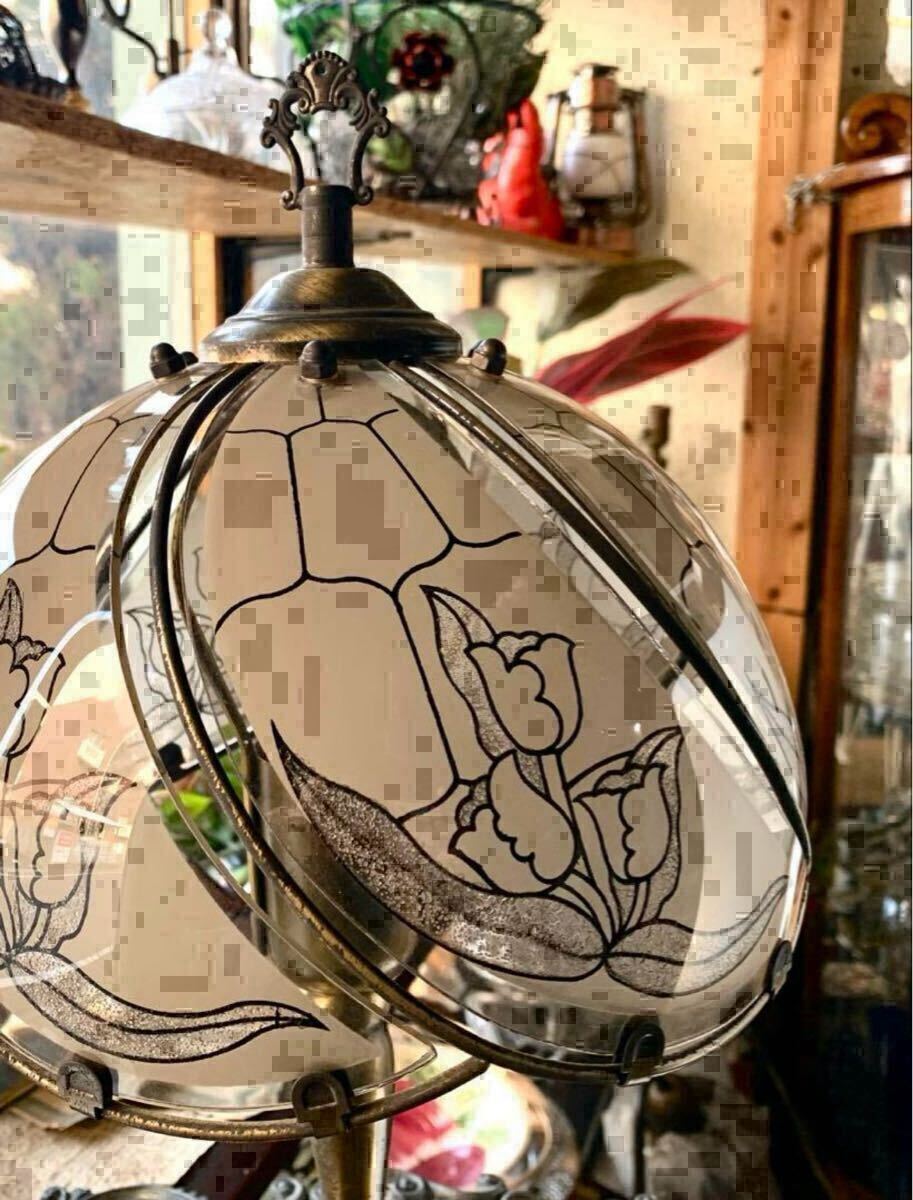 ガラスシェードでチューリップ柄のレトロかわいいランプです