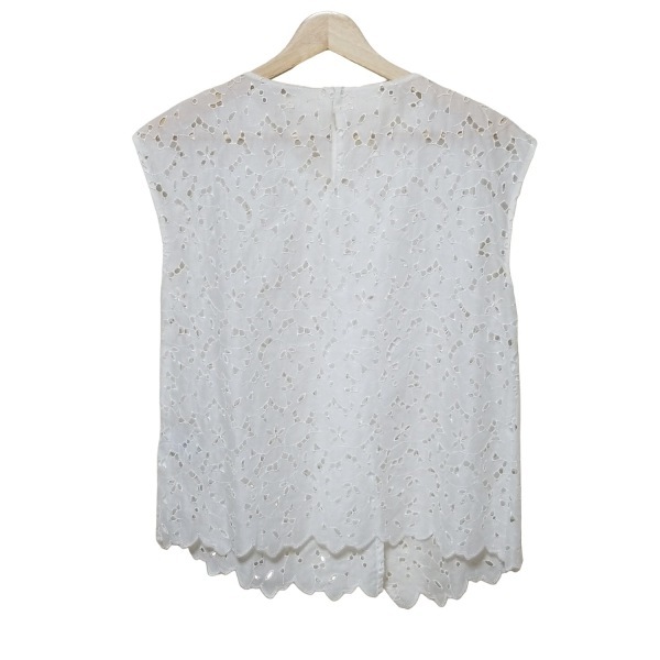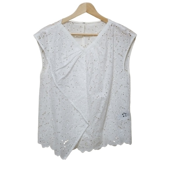 トゥモローランド TOMORROWLAND 半袖カットソー サイズ36 S - アイボリー レディース Vネック/パンチングレース/フラワー(花)/ラメ 美品