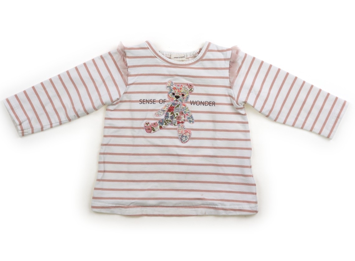 品質タグにシールはがし跡のノリ残りあり。袖口とおなか付近広範囲に複数のシミと汚れあり。色あせと毛羽立ちがありますが、普段使いにいかがでしょうか。