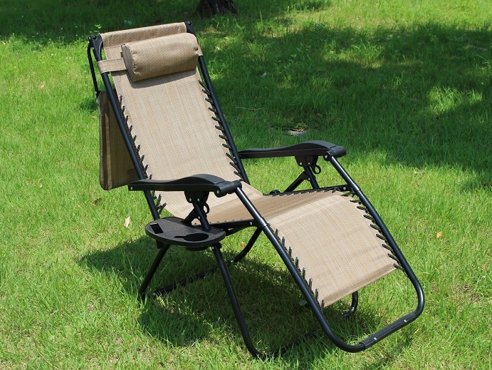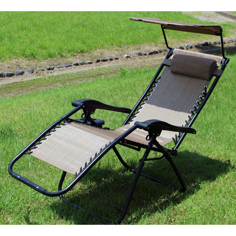 ★北米ウォールマート発★フォールディング★リクライニングチェア★無段階角度調整★屋根&トレー付★ヘザーベージュ★ビーチチェア★ | |||