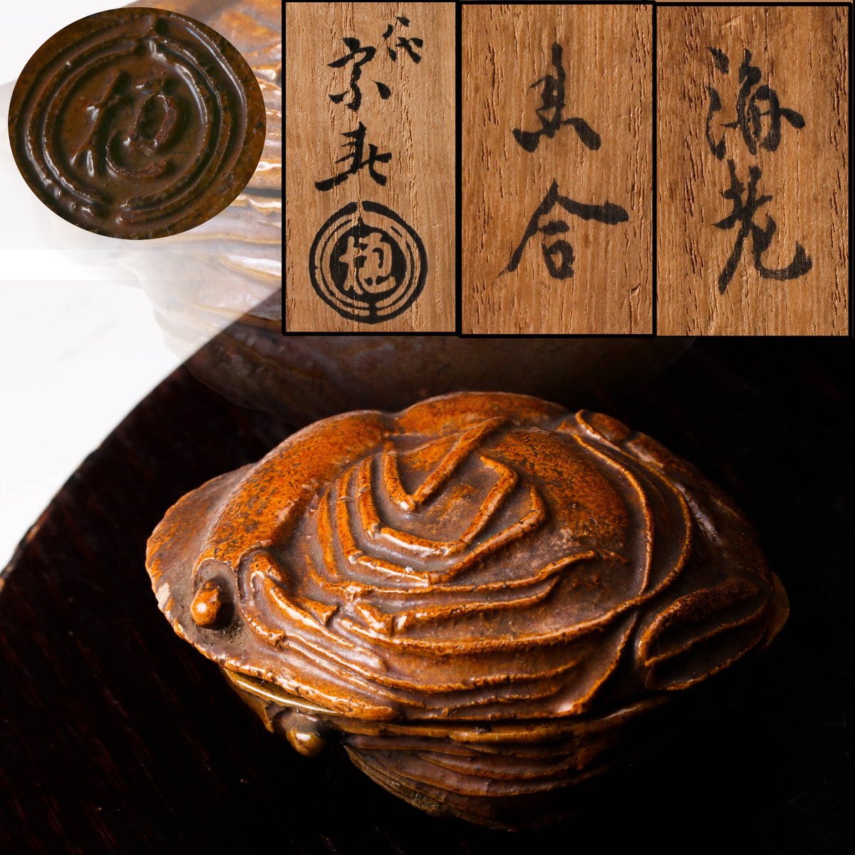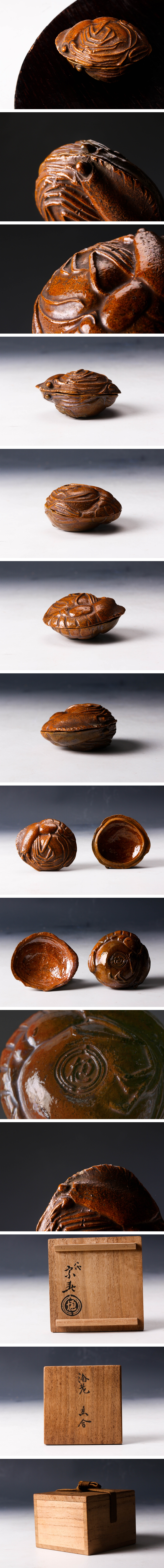 【佳香】八代 大樋長左衛門(宗春) 海老香合 共箱 茶道具 本物保証