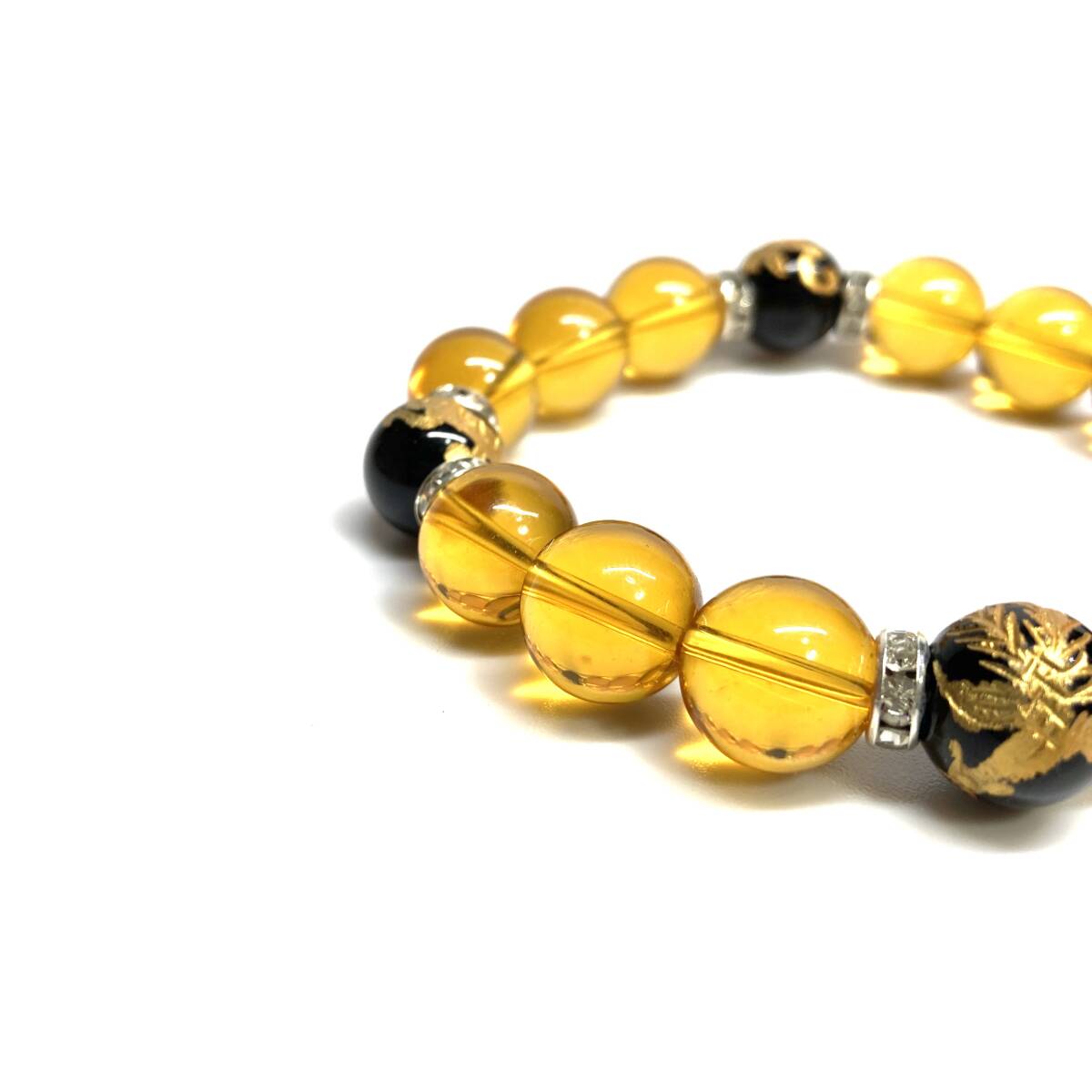 四神獣金彫オニキス×シトリン 12mm パワーストーン ブレスレット天然石 青龍 白虎 玄武 朱雀 運気上昇 金運 健康 お守り 開運 四神獸 S