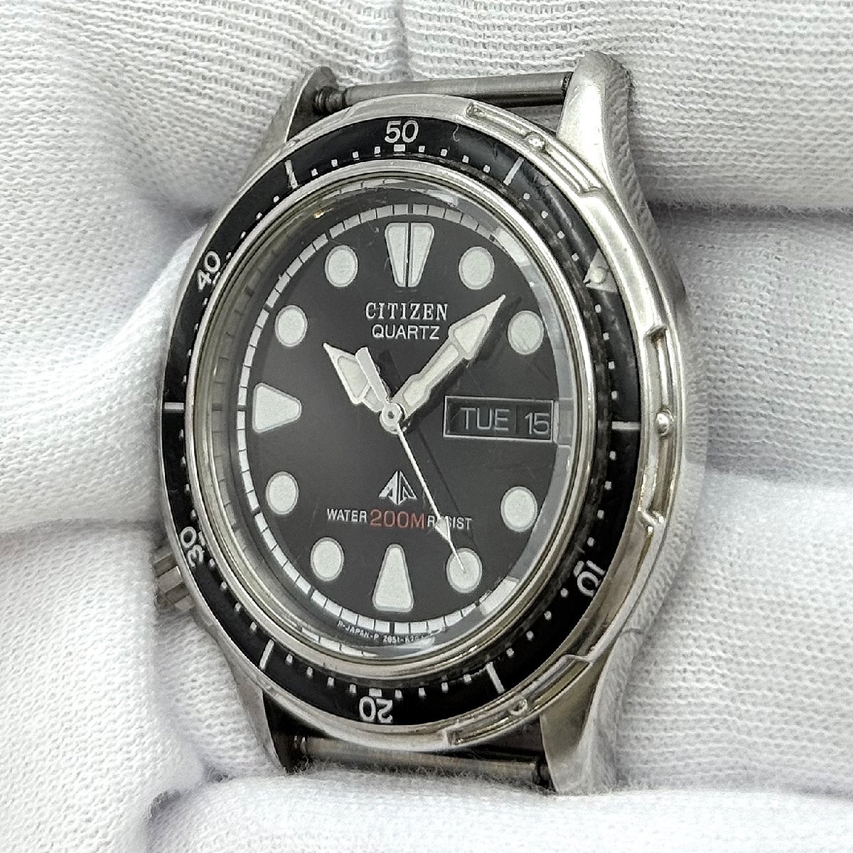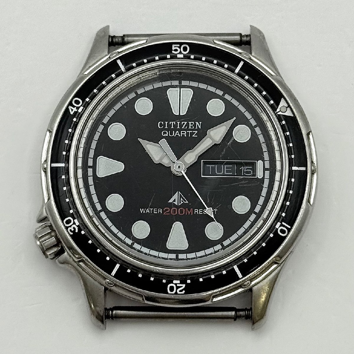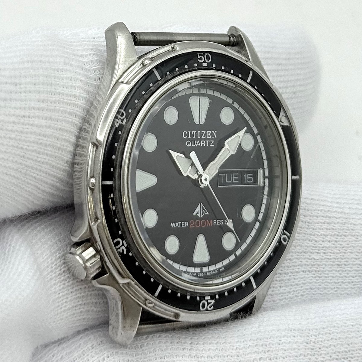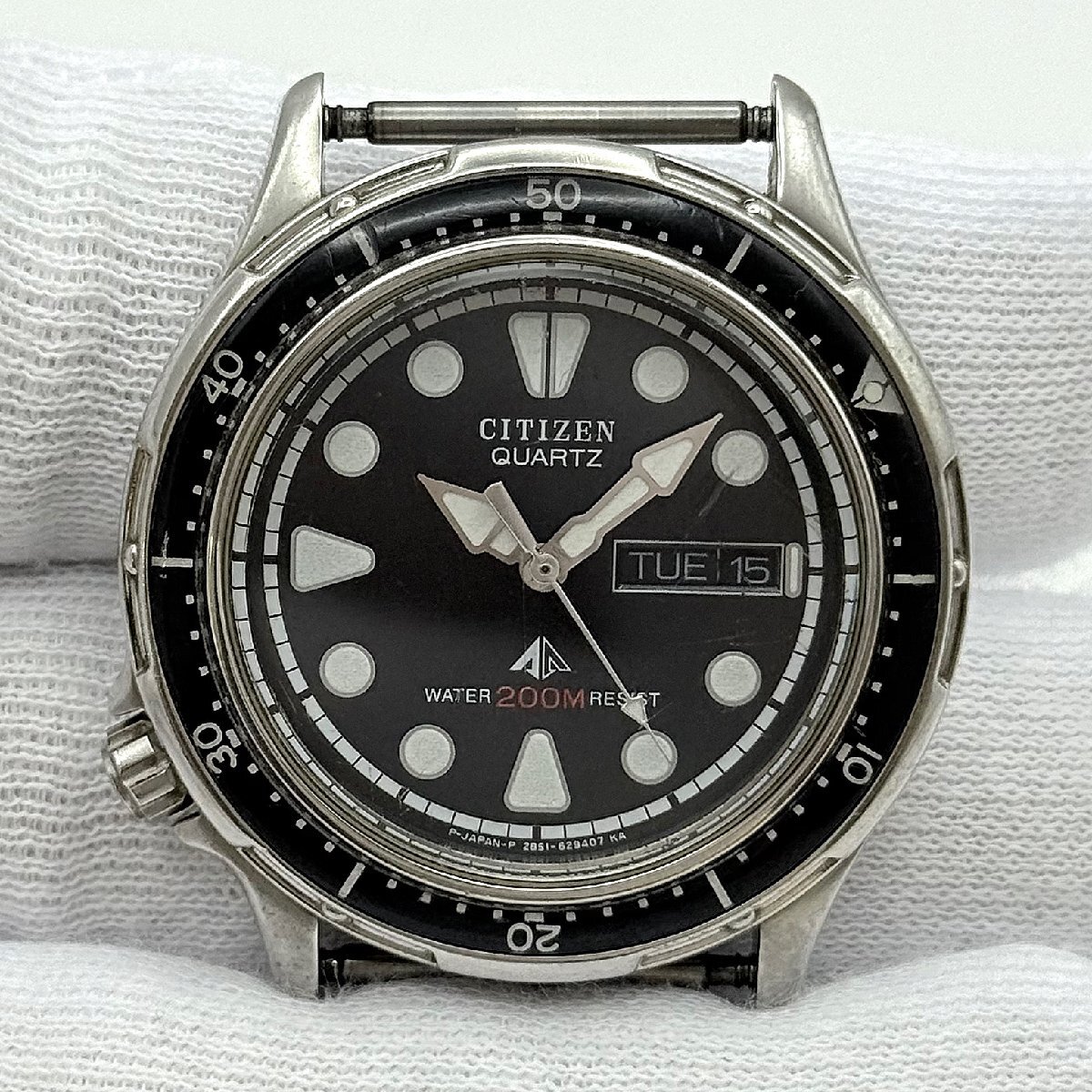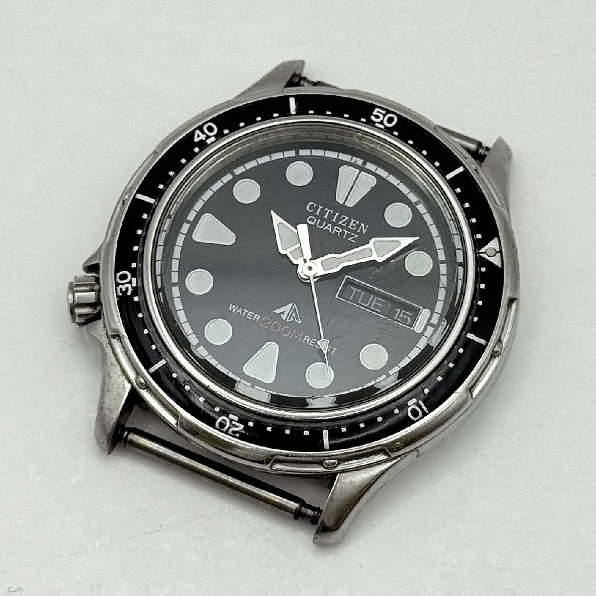 1円~/CITIZEN/シチズン/2854-269381/3針/デイデイト/ブラック文字盤/ラウンド/200M/クォーツ/メンズ腕時計/ジャンク/I027