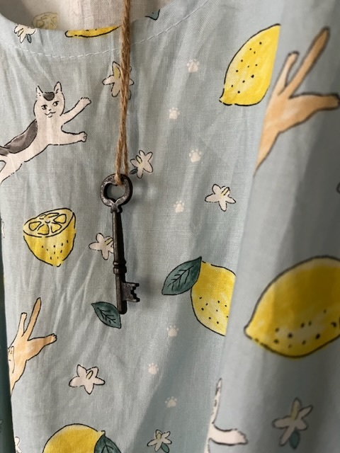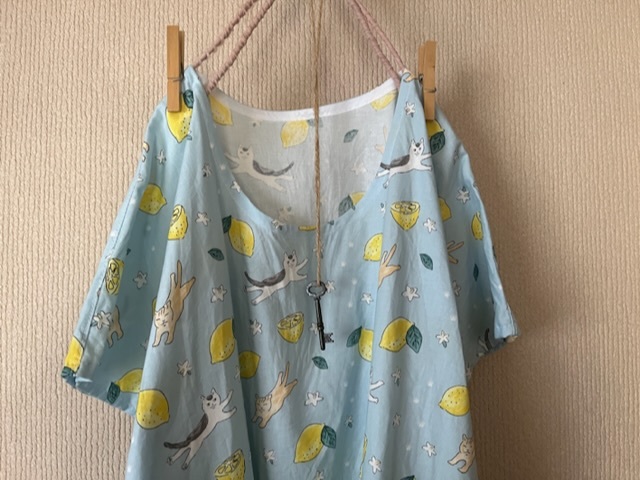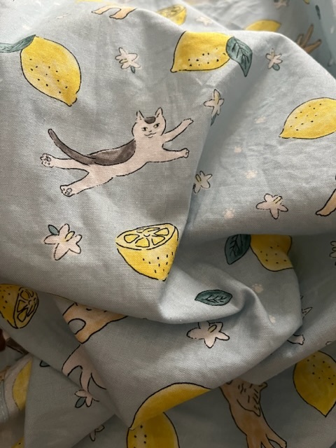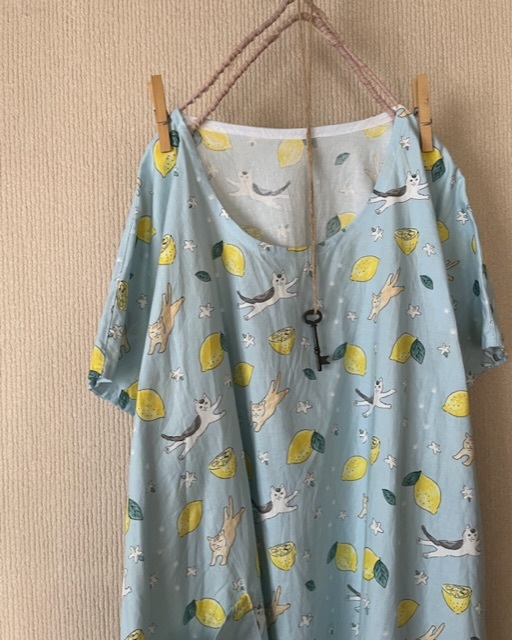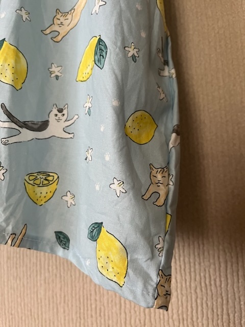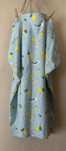 レモンと猫ちゃんのとっても可愛いファブリックを使用し、パッチワークしました^^