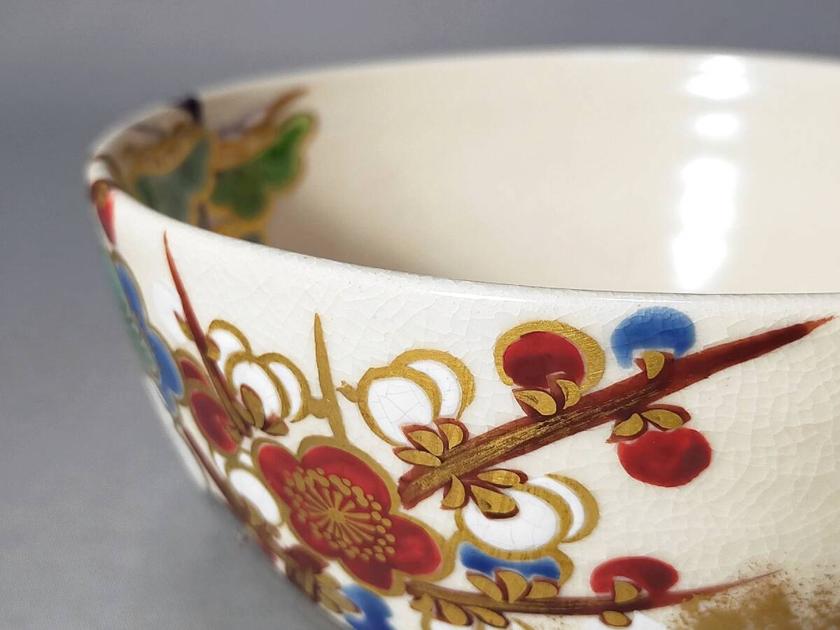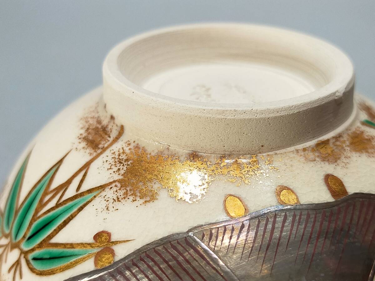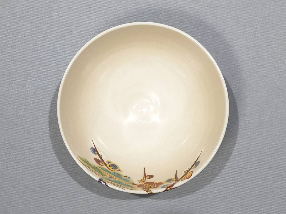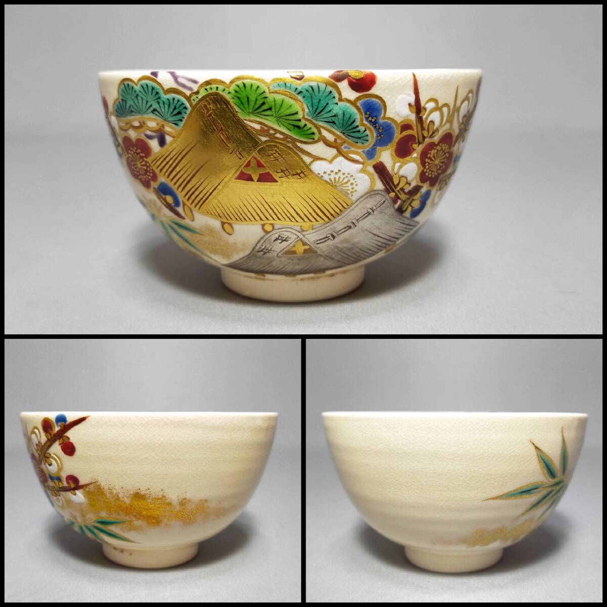 真葛焼 茶碗 真葛香斎 (宮川香斎) 造 家の栄 色絵金彩 松竹梅葛屋図 共布・共箱 茶道具