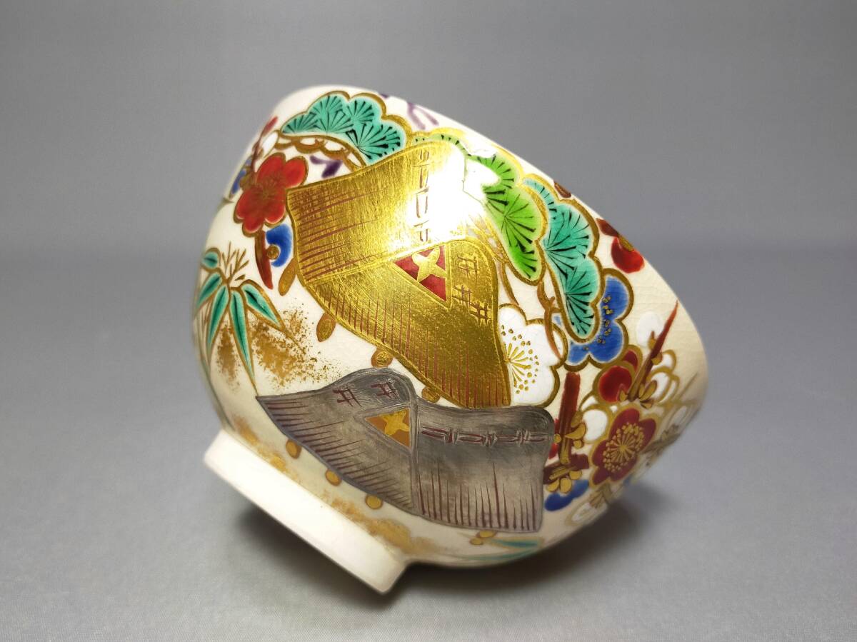 FS09 真葛焼 茶碗 真葛香斎 (宮川香斎) 造 家の栄 色絵金彩 松竹梅葛屋図 共布・共箱 茶道具