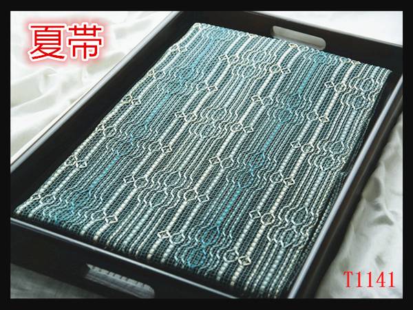 蔵【T1141】厳選逸品 夏帯 羅 錆浅葱色地 透かし 気品豊かに 夏物 正絹高級美術名古屋帯 新品同様 ◇検簪着物袋帯和装小物帯締め