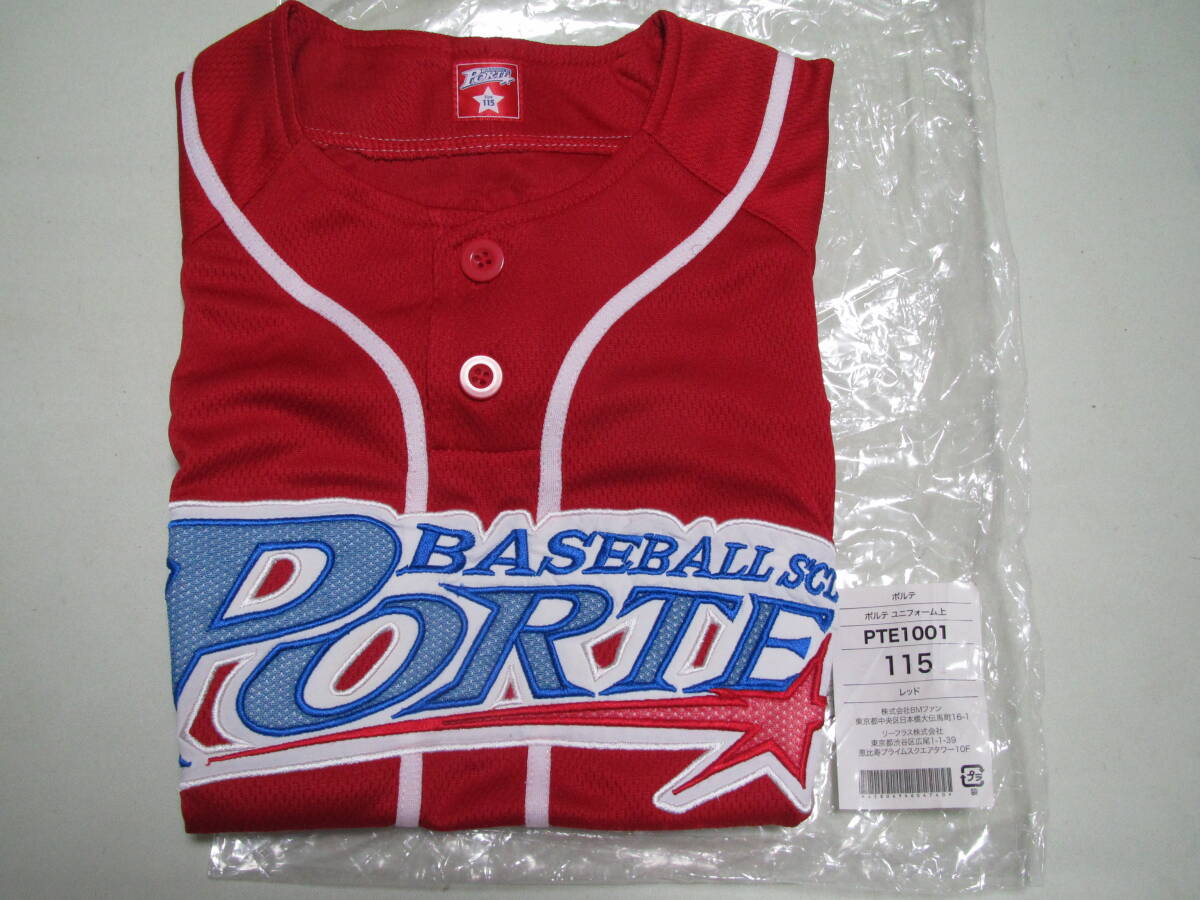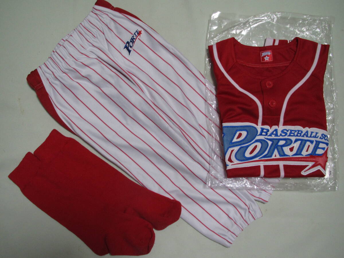 A 3点セット 新品 & 中古 良品 PORTE ポルテ ベースボールスクール 115cm 野球 ユニフォーム 半袖 上下セット 靴下 ソックス 子供用