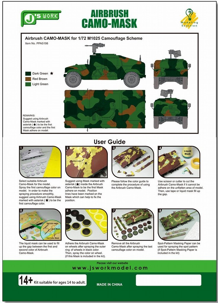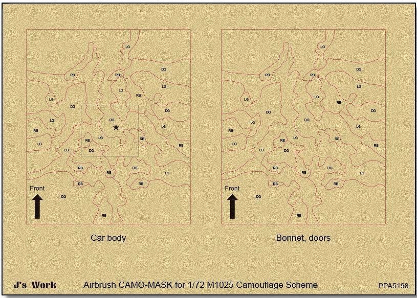 J's Work PPA5198 エアブラシ用迷彩マスキング 1/72 M1025 カモフラージュスキーム