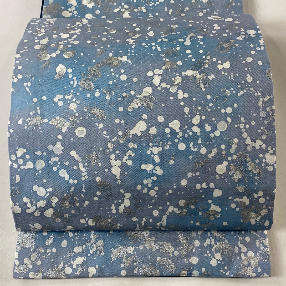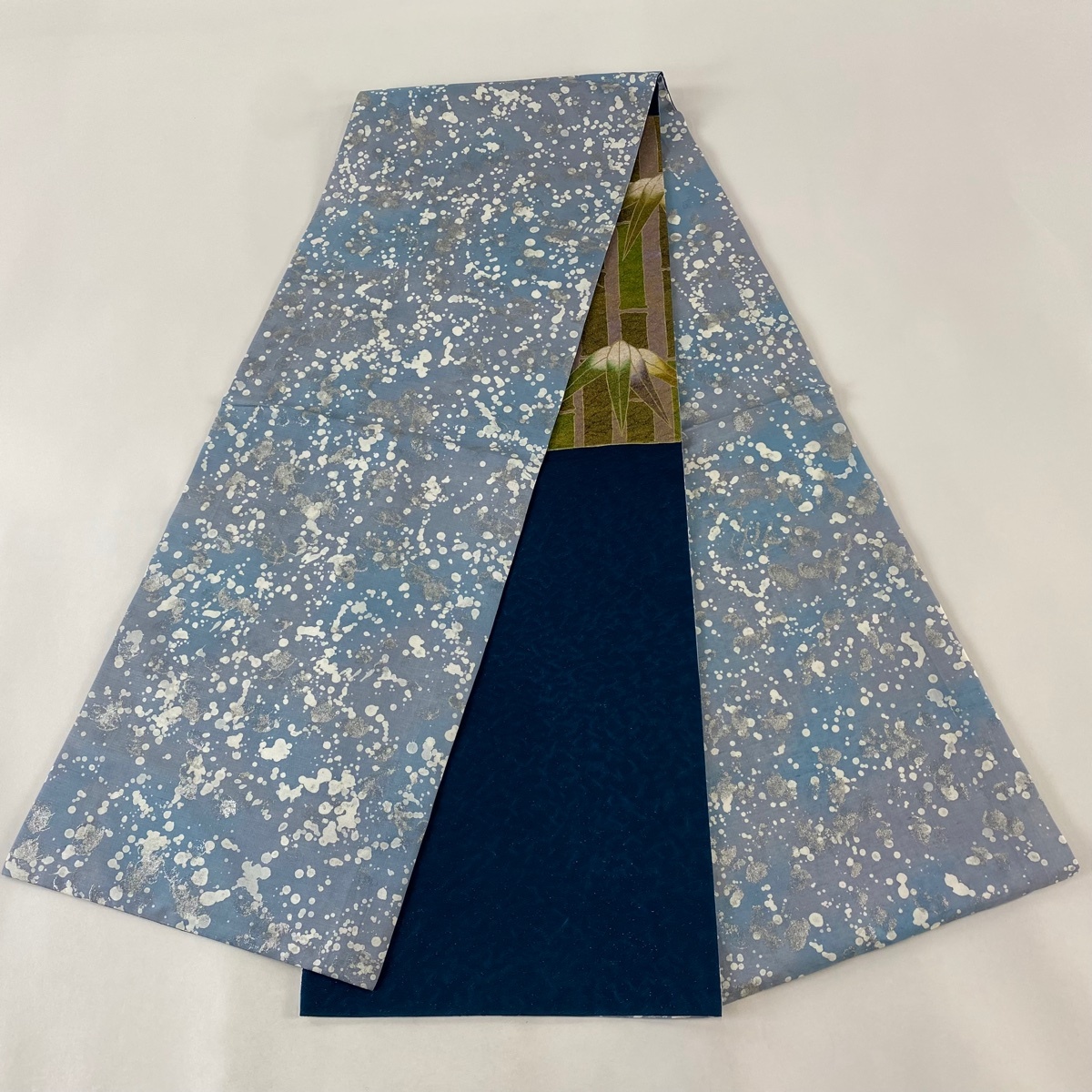 | 袋名古屋帯 美品 名品 紬地 リバーシブル 幾何学模様 ぼかし柄 銀彩 水色 正絹 【中古】 |