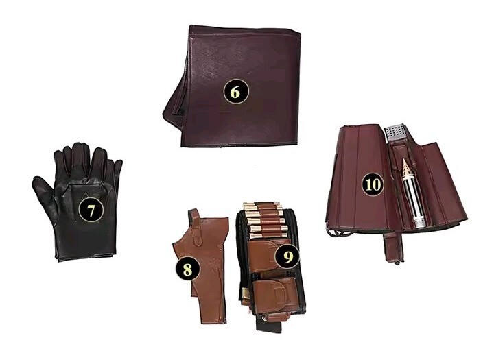 ガンベルトと弾丸付きホルスターのみになります。画像9内の、グローブや左右の腕パーツも付属します。
