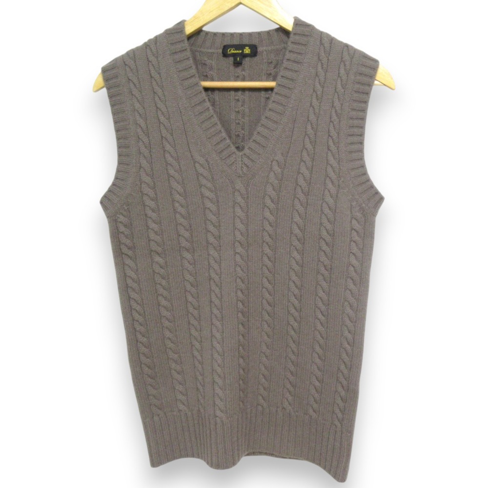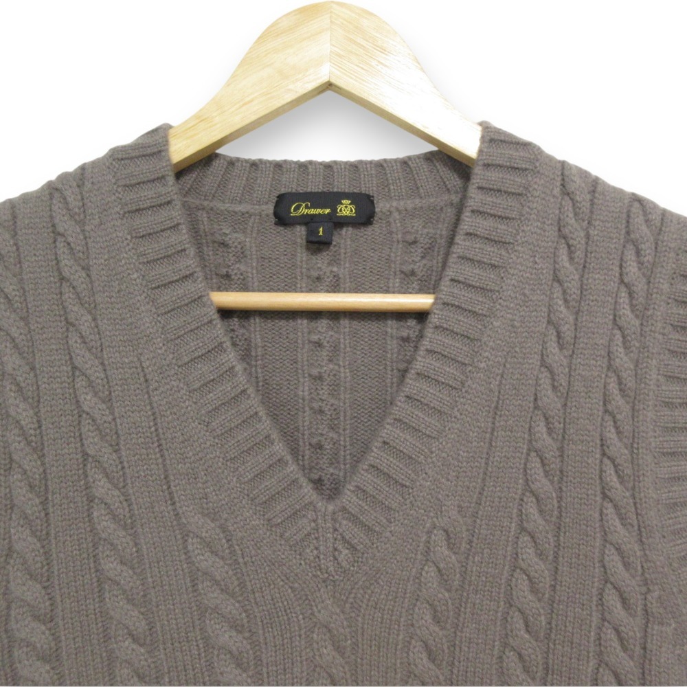 美品 DRAWER ドゥロワー ウール×カシミヤ Vネック プルオーバー ケーブルニット ベスト カットソー サイズ1 グレージュ