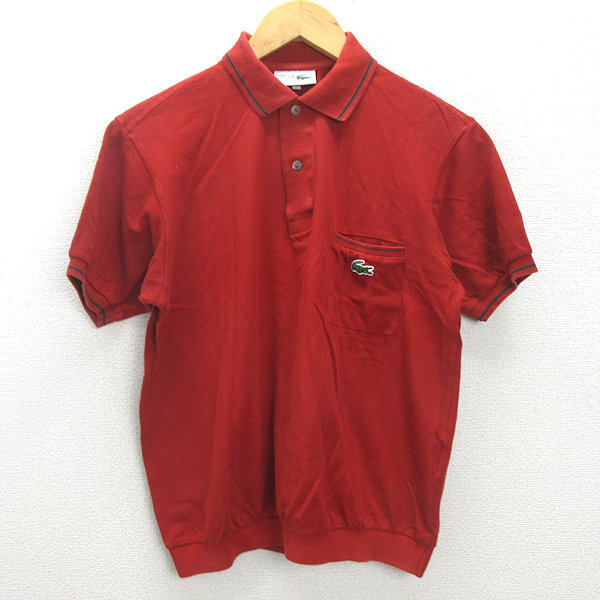 G■ラコステ/CHEMISE LACOSTE 半袖ポロシャツ/鹿の子地【4】赤/men's/92【中古】■