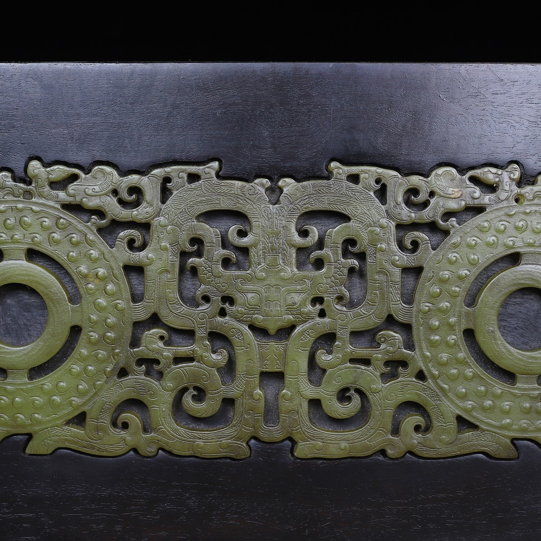 *珍品旧蔵* 清 黑檀木 はめ込む玉 開蓋多寶盒 收納盒 置物 極細工 中国古玩 骨董品 古美味 H48