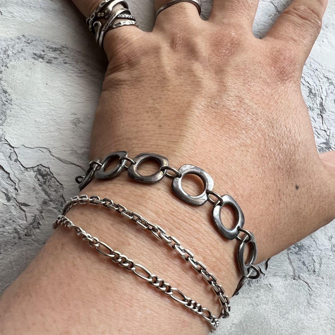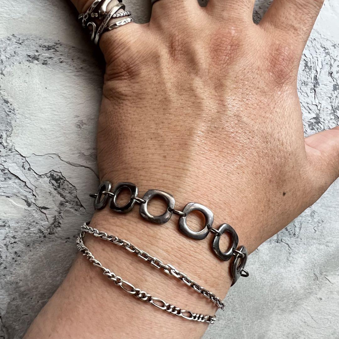 海外のヴィンテージショップで買い付けたITALY刻印入りスクエアチェーンブレスレットになります。