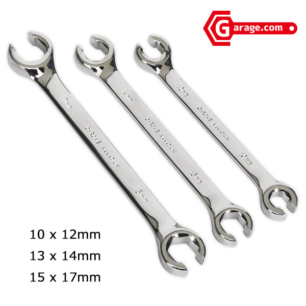 | 商品詳細 | ブレーキパイプ、フレアナットの締緩に便利なフレアナットレンチ3本セット ■商品仕様 ・サイズ : 10 x 12mm、13 x 14mm、15 x 17mm ・材 質 : CR-V |
