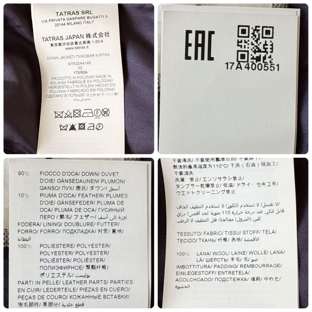 TATRAS タトラス AGORDO アゴルド BOTTO社製 ウール ダウンジャケット グースダウン フード付き メンズ 02サイズ M相当 2020AW ネイビー 高級 防寒 撥水 ビジネス カジュアル アウター 正規品