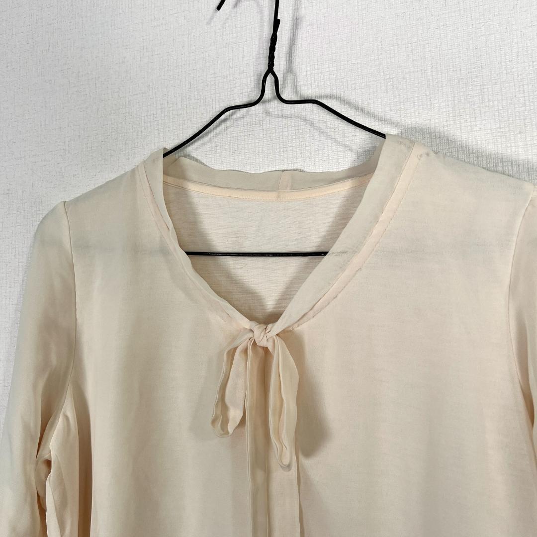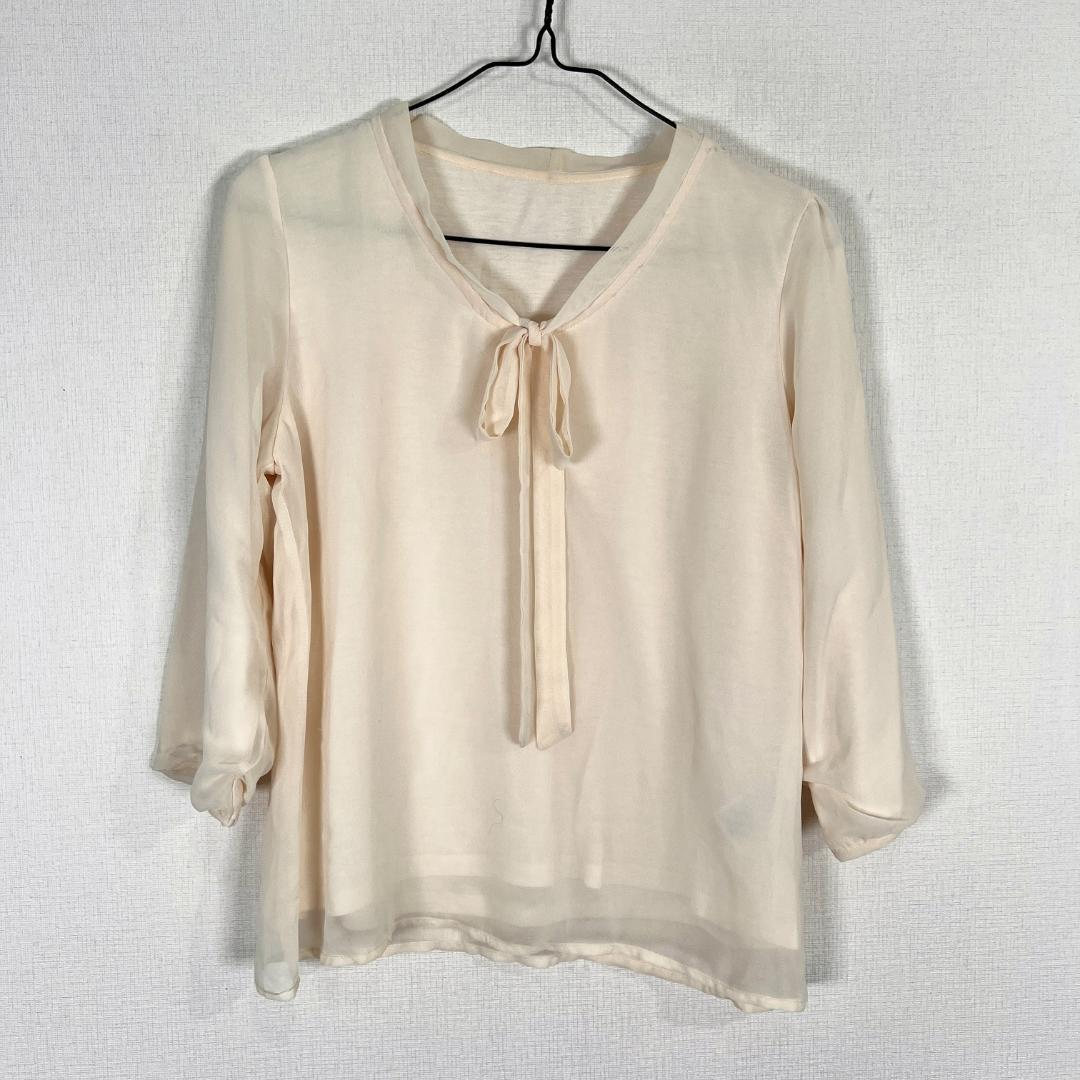 【Vis】ビス ジュン ベージュ リボン 七分袖 ブラウス トップス カットソー 女性用 レディース Mサイズ【a004】