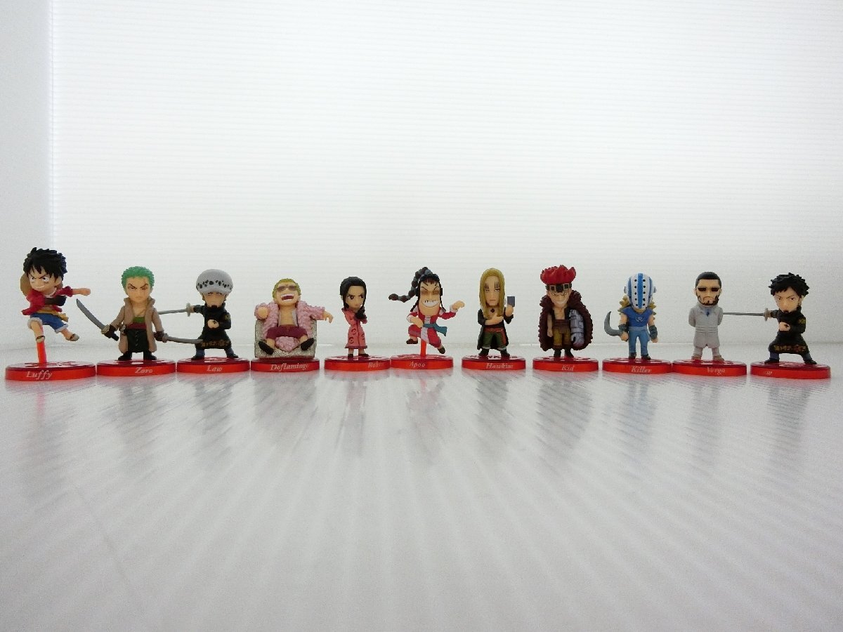 パンクハザード編の激闘を彷彿とさせるラインナップです。一味の【ルフィ】【ゾロ】【ロビン】に加え、【ヴェルゴ】【トラファルガー・ロー】、ジョーカーこと【ドンキホーテ・ドフラミンゴ】や“最悪の世代”の面々など、バラエティ豊かに立体化。シークレット込み11種。