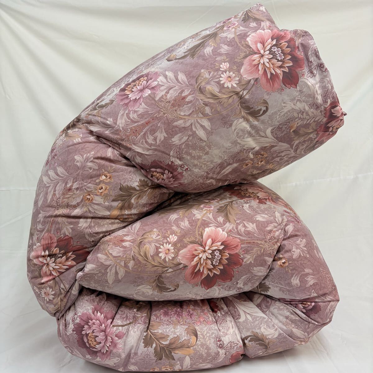 日本の羽毛工場で、羽毛の洗浄、乾燥、パワーアップ加工を施し、一枚一枚丁寧に手作業で吹き込んだ羽毛布団です。