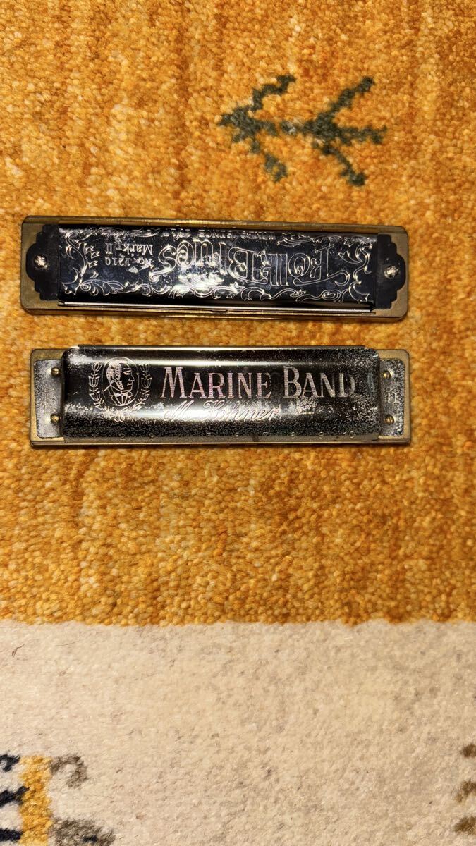 ハーモニカ 2本セット Marine Band / Blues Harp系 だと思うもの、【現状品・ジャンク品扱い】 写真見て購入してください.