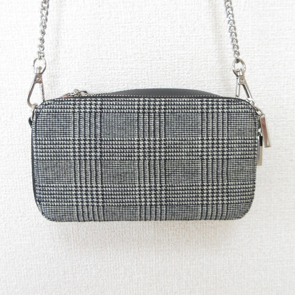 商品名:DIANA ダイアナ グレンチェック柄 レザー チェーン ショルダーバッグ ポーチ ポシェット グレー×ブラック