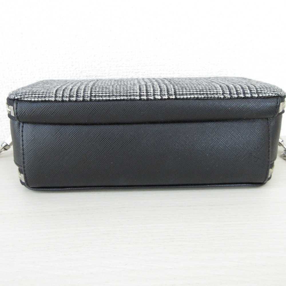 良品 DIANA ダイアナ グレンチェック柄 レザー チェーン ショルダーバッグ ポーチ ポシェット グレー×ブラック