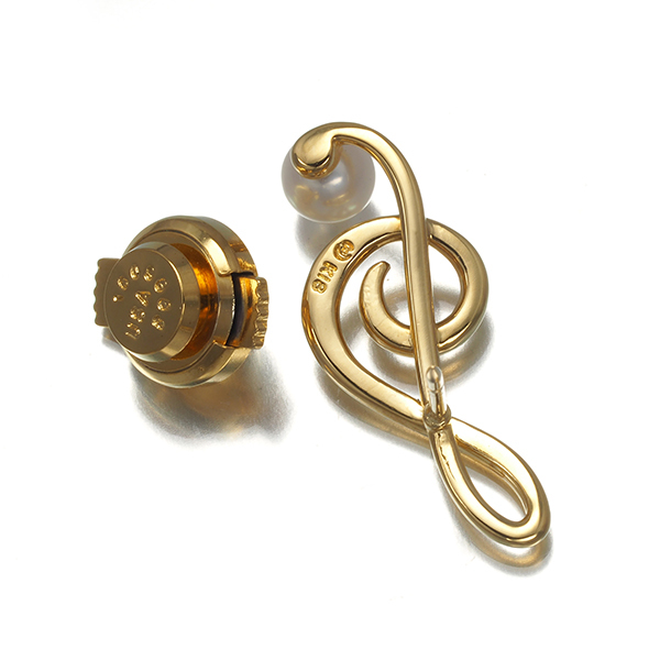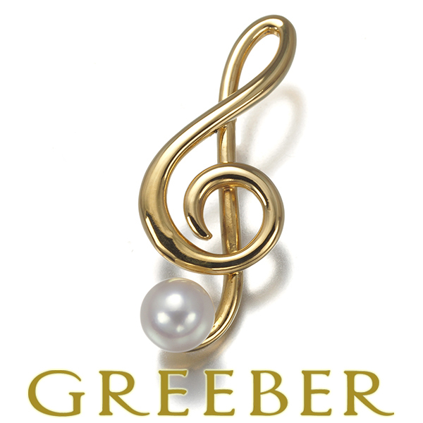 艶やかなゴールドの煌めきと共に美しいパールの輝きを留めたタサキの音部記号ブローチです。 |