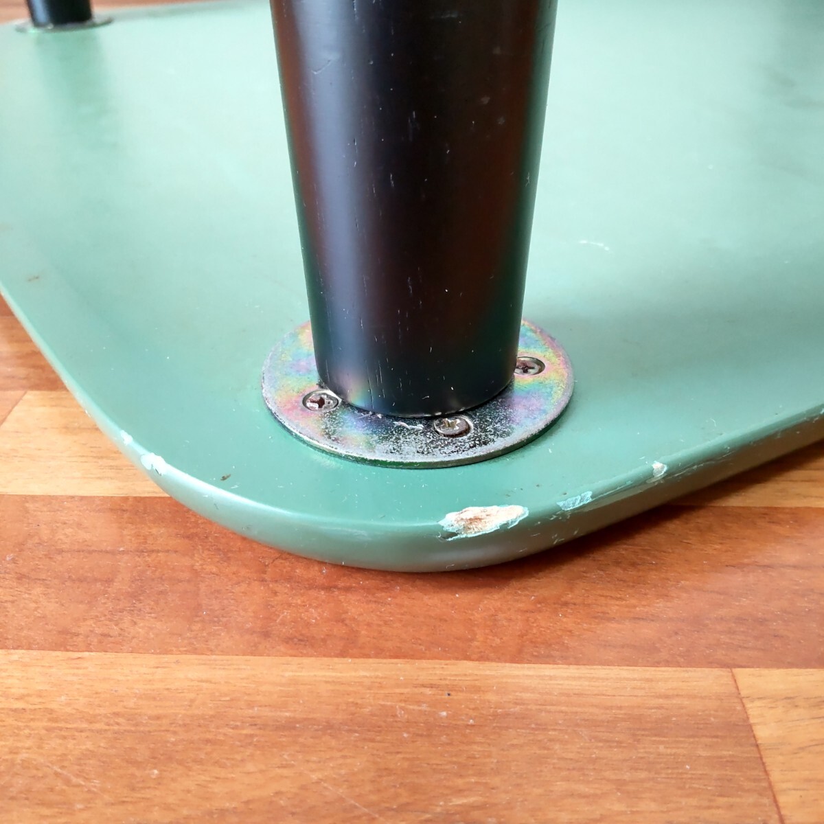 シャルロット・ペリアンの519 PETALO ペタロ ローテーブルを思わせるような配色でターコイズブルーのようなレトロなアンティークカラーで中々見当たらない珍しいカラーです。重厚感のあるしっかりした作りです。